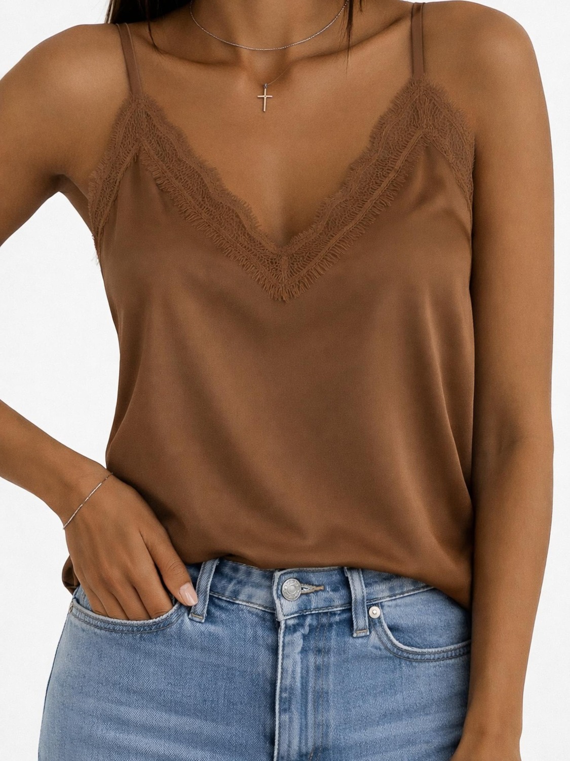 Worldclassca Топ 'Spaghetti Lace Trim Top' в цвете Nude
