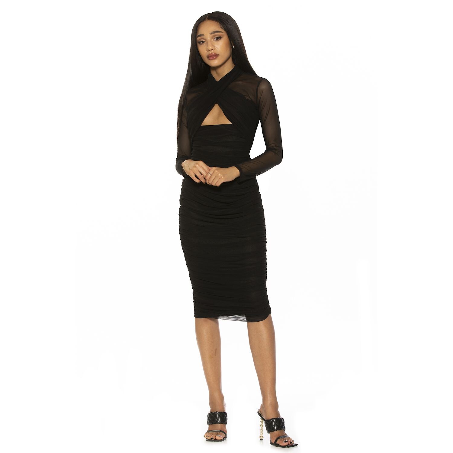Независимо от случая, вы будете спокойны, зная, что, придя в этом женском платье миди со сборками и вырезом спереди от ALEXIA ADMOR, вы будете там одеты лучше всех.