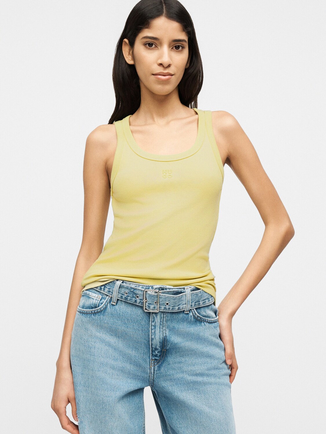 HUGO Топ 'Datamia' в пастельно-желтом цвете