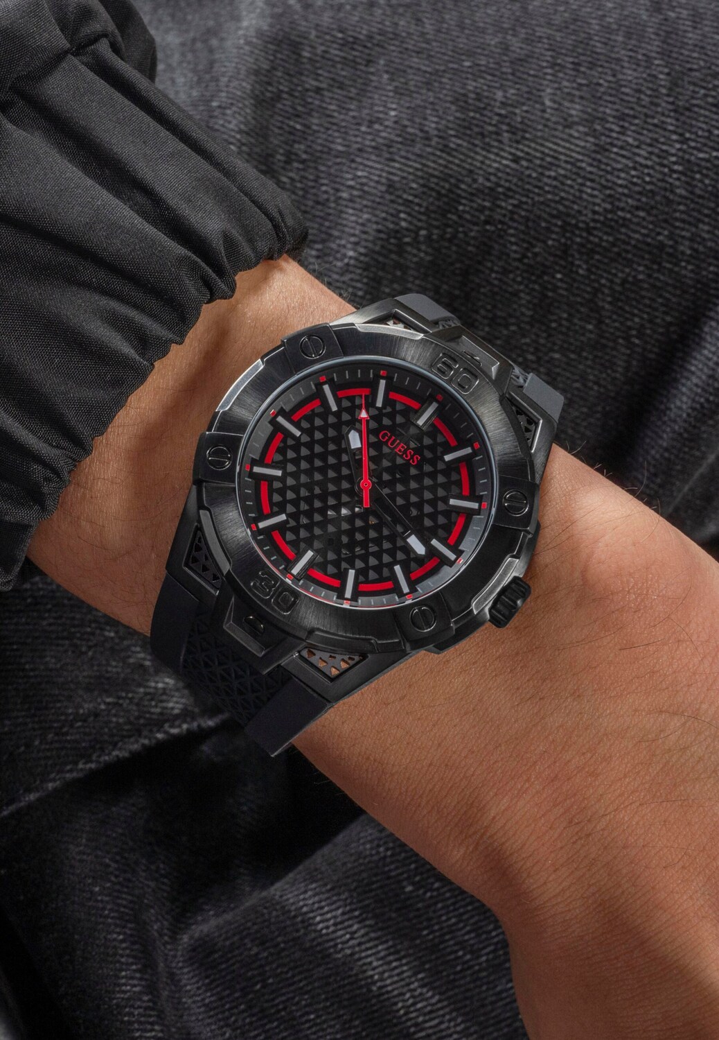 GUESS Часы Analog 'NETWORK' в черном цвете