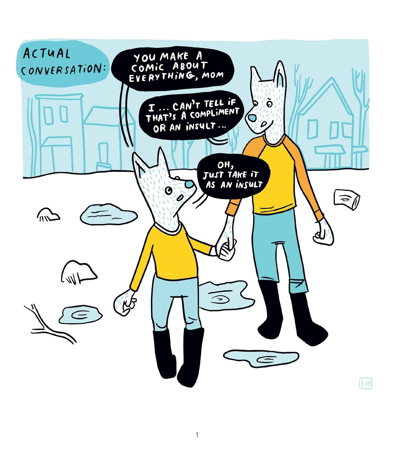 Изображая себя на страницах книги в образе волка, Лорен принимает прозвище «Мамочка»: отчасти ответственная взрослая, воспитывающая детей, отчасти очаровательный дикий ребенок. В своей особенности она - это все мы: боремся с тревогами, восхищаемся мелочами и готовы опустить руки и смеяться или плакать, сталкиваясь с социальными сетями, белками, политикой и выбором блюда на ужин. На этих страницах Лорен перемежает свои дневниковые комиксы, меткие наблюдения и философские размышления несколькими живописными иллюстрациями, занимающими всю страницу, чтобы показать смену времен года.