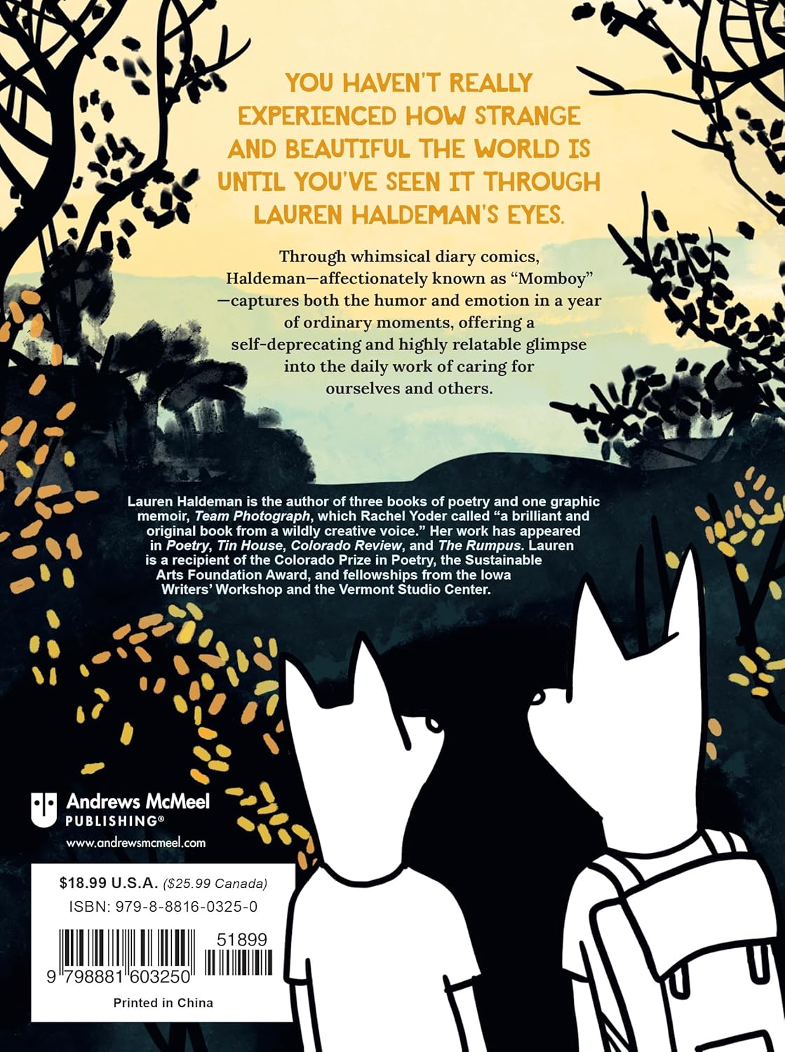 Лорен Холдеман - автор трех сборников стихов, включая «Вместо того чтобы умирать», удостоенный премии Колорадо, и одной графической автобиографии «Team Photograph» (Sarabande, 2022), которую Рэйчел Йодер назвала «блестящей и оригинальной книгой от невероятно креативного автора». Ее предыдущие работы публиковались в журналах Poetry, Tin House, Colorado Review, Fence, The Iowa Review и The Rumpus. Лорен является лауреатом стипендии Iowa Artist Fellowship, премии Sustainable Arts Foundation Award, а также стипендий от Iowa Writers' Workshop, одной из самых престижных программ для писателей в стране.
