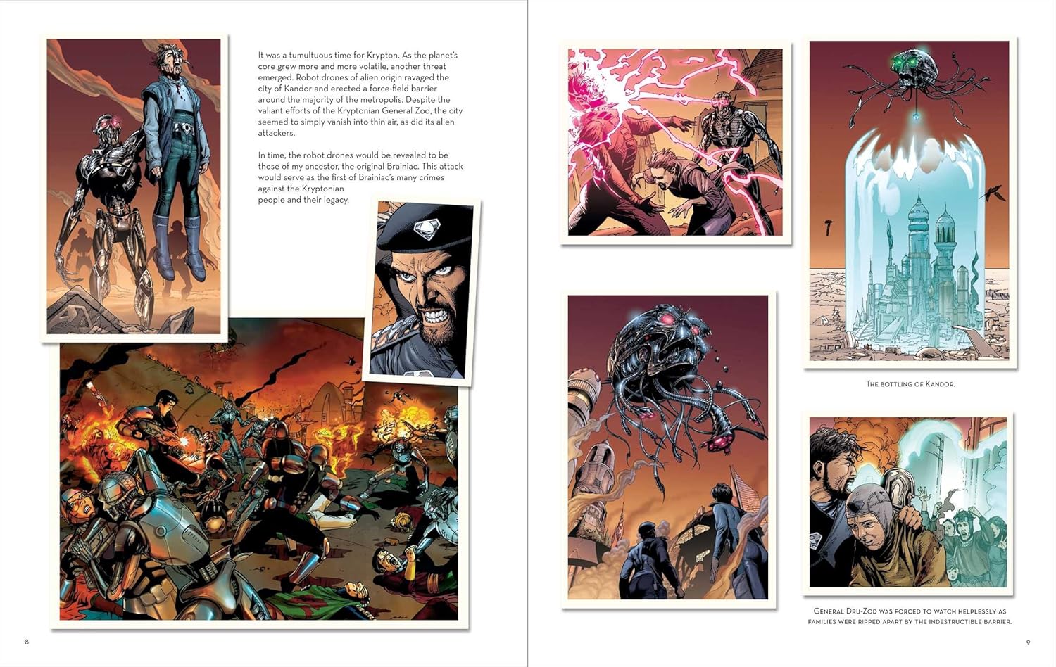 «Книга описывает историю Супермена, рассказывая о его друзьях, таких как Лоис Лейн, Джимми Олсен и Перри Уайт, а также о таких врагах, как Лекс Лютор, Брейниак, Думсдей и Бизарро. Среди особенностей: секреты повседневной жизни Кларка Кента; статьи из газеты Daily Planet; свидетельства очевидцев о подвигах Супермена; детские памятные вещи и записи из дневника; совершенно секретные данные, известные только Супермену; любимые места в Метрополисе; схемы Крепости Одиночества; файлы из тюрьмы на острове Страйкер; и сотни изображений врагов и союзников Супермена». - Кевин Мелроуз