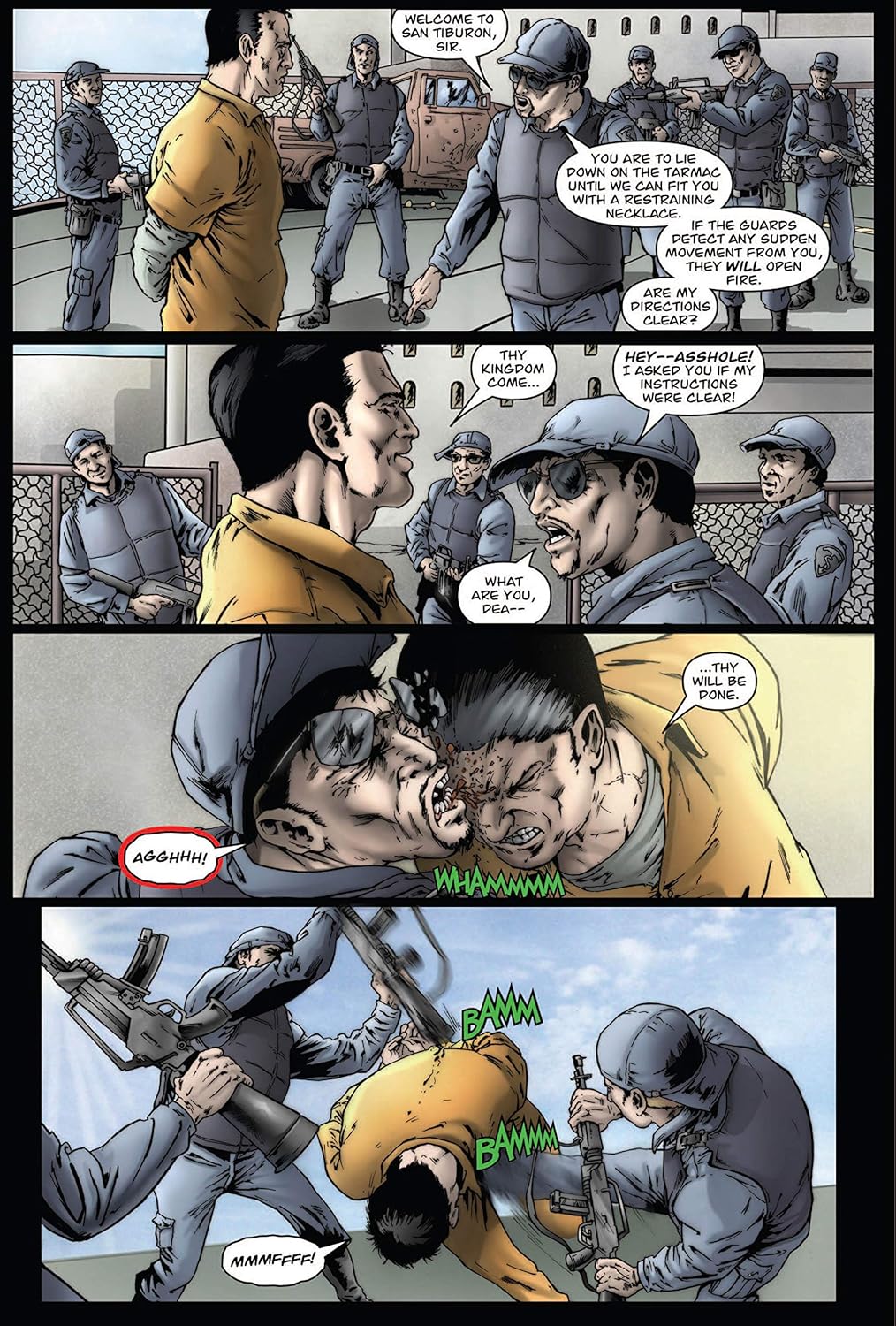 Менее чем в 30 милях от побережья Флориды находится остров, и если вам посчастливится его увидеть… скорее всего, вы никогда его не покинете! Это Сан-Тибурон: город прекрасных белоснежных песчаных берегов, кристально чистой воды… и самой опасной в мире тюрьмы строгого режима! И для 185 самых опасных, сверхсильных преступников мира это их последний дом. Они будут находиться в этих стенах, пока не отбудут свой срок… или пока не встретят свой конец. Побегов нет. Нет никаких сделок или компромиссов. Есть только Сан-Тибурон!