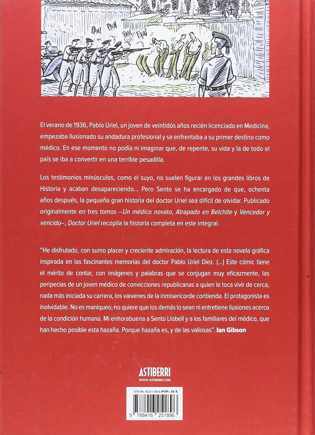 Верано 1936 года, Пабло Уриэль, юноша-вентидос, получивший лицензию на медицину, стал иллюзией своего профессионального профессионала и был в восторге от своего первого предназначения как медика. В этот момент я не могу себе представить, что раскаиваюсь, что твоя жизнь и вся страна превратились в ужасную песадилью. Los testimonios minúsculos, como el suyo, no suelen figurar en los grandes de Historia y acaban desapareciendo... Pero Sento se ha encargado de que, orchenta años después, la pequeña gran historia del Doctor Uriel sea difícil de olvidar. Оригинальная публикация в трех томах - Un médico novato, Atrapado en Belchite y Vencedor y vencido - Доктор Уриэль воссоздал полную историю в этой целостной книге, cuyo primer tomo ganó el Premio Internacional de Novela Gráfica Fnac-Sins entido en 2013. Aún en plena dictadura el Doctor Уриэль написал в своих воспоминаниях, что видел свет в очень знакомом издании, опубликованном в 1988 году, до смерти. Сенто Ллобель, автор трилогии и Йерно де Уриэль, признается: «Когда воспоминания остались на мне, я был впечатлен.
