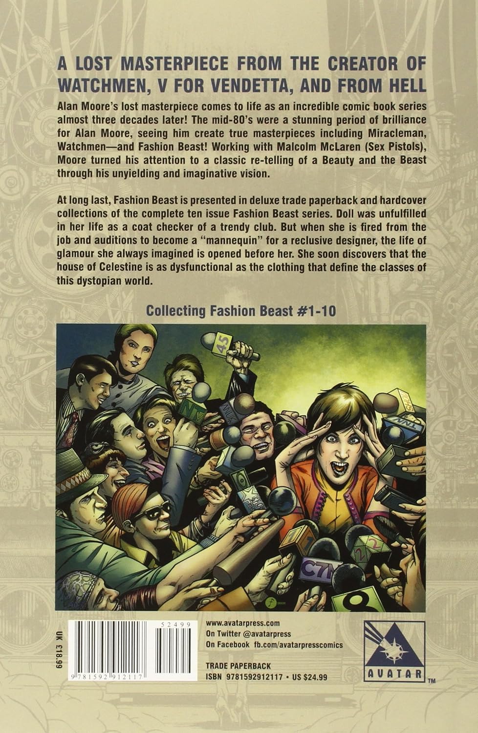 Алан Мур широко считается величайшим автором комиксов всех времен. Посвятив этому жанру более тридцати лет, он создал такие произведения, как «Хранители» (самый продаваемый графический роман в истории), «Из ада», «Лига выдающихся джентльменов», «Неономикон», «Болотная тварь», «Том Стронг», «Прометея», «V значит Вендетта» и «Потерянные девушки», и это лишь некоторые из них. Издательство Avatar Press в последние годы опубликовало множество работ Мура, включая его основополагающее руководство по созданию графических историй «Письмо для комиксов».
