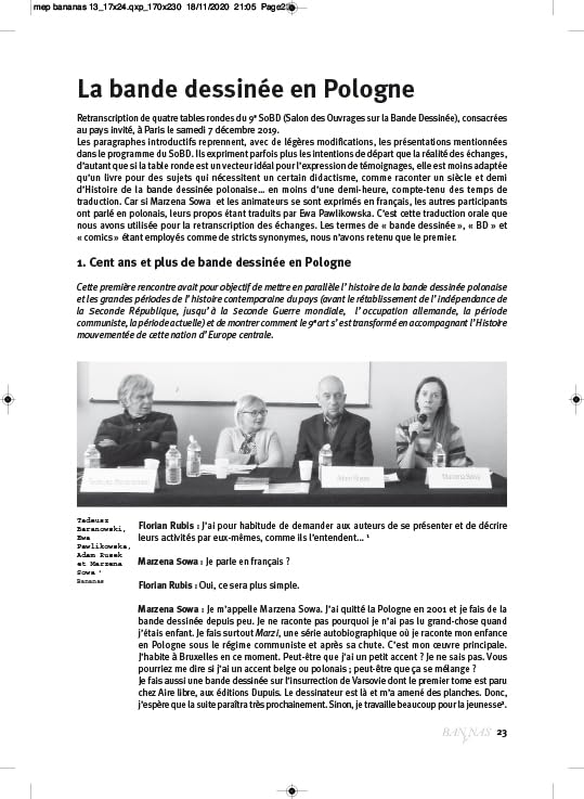 БАНАНЫ - это обзор критики, истории и теории, посвященный замыслам. Соммер: Рене Госинни, пар Люк; Entretien avec Lucques, par Evariste Blanchet; Tables rondes du 9e SoBD (Salon des Ouvrages sur la Bande Dessinée): Labande dessinée en Pologne, от Флориана Рубиса, Гарри Моргана и Тьерри Лемэра (аниматоры) + Faut-il revoir toute l'Histoire de la Bande dessinée franco-belge?, от Гарри Моргана (аниматор); Партнер с Максом Ленверсом; Бенуа Барале; Alphabetiser par labande (dessinée): Альфа... направления Йенса Хардера (2009), Пьера-Жиля Пелисье; Oxygene, Жан-Жак Лаланн; «Капризы Текса Уиллера»: искусство менеджера техасского рейнджера от Мануэля Хирца; Бункер и пустыня (Du Motif de la Case-Cube dans Inside Moebius), автор Рено Шаванн.