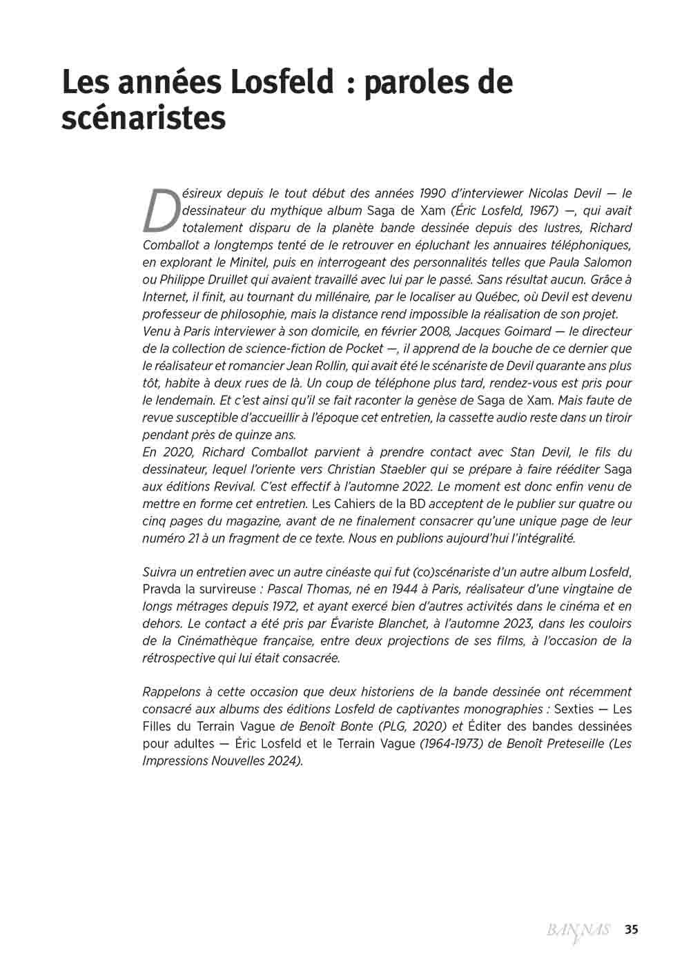 БАНАНЫ - это ежегодный обзор критики истории женской группы, которая исследует события, связанные с плохими мыслями или небрежностью. Айнси, в номере 17, это архив, посвященный dessinatrices de BD. СОММАЕР: Йоко Цуно: Кредо и секреты Роже Лелупа, Оливье Жаррижа, Ги Мумино (1927-2022): Тройная жизнь, жизнь, Эварист Бланше, Годы Лосфельда: условности сценаристов, Сага о Xam : Entretien avec Jean Rollin, par Richard Comballot , Pravda la survireuse : La verité sur (ou selon) Паскаль Тома , par Évariste Blanchet , Mat , chantre de la Bande dessinée populaire , par Jean-Jacques Lalanne , Table ronde du 13e SoBD : La Bande Dessinée de Fiction est-elle révolue ?Â, «Mille castorsÂ! » -  propos du Cap'tain Swing et de quelques autres, Мануэль Хирц, À la recherche de Jules Stromboni - étape 1: Le Futuriste, par Pierre-Gilles Pélissier, Archives: Où sont les femmes?, par Évariste Blanchet et Жан-Поль Женнекен, Бенуа Барале, Фабрис Нео.