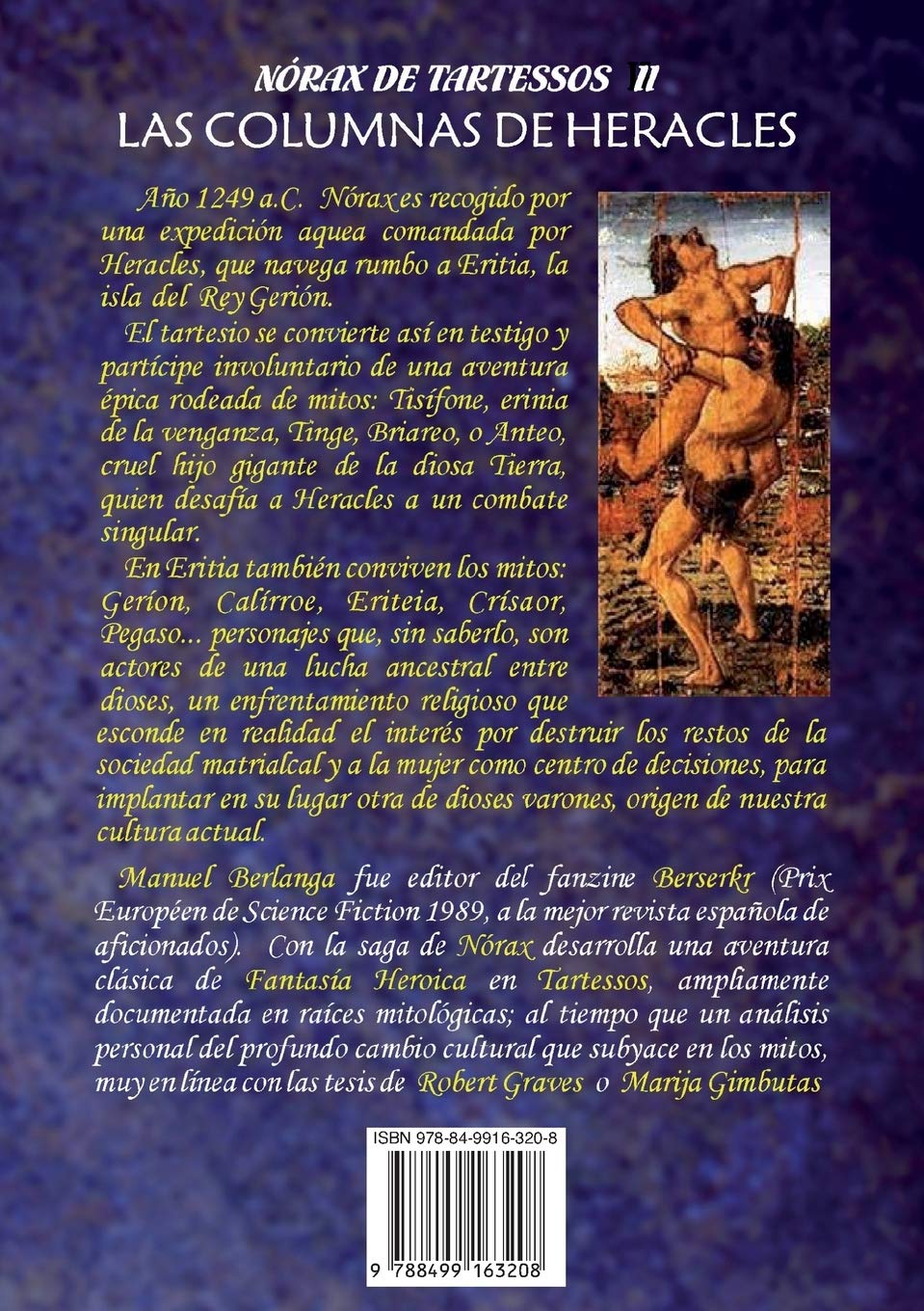 Тартесс, в 1249 году, Кноракс признан на море во время экспедиции под командованием Геракла, которая отправилась в Эритию, на остров короля Гериона. Тартесио превращается в свидетельство и невольно участвует в эпическом приключении, в котором участвуют митосы: Тисифон, Эриния де ла Венганса, Тинг, лас Сьен Манос де Бриарео, или Антео, жестокий сын-гигант из диозы Огненной Земли, который оторвался от Геракла в единственном бою. В Эритии также были созваны митосы: Герион, Калиррое, Эритея, Крисаор, Пегас... персонажи, которые были грехом, сыном актеров луча предков между диозами, религиозным фанатизмом, который ускользнул от реальности, чтобы разрушить остатки матриархального общества и ла женщина, действующая как центр принятия решений, для имплантации других диозов варонов, происхождения актуальной нашей культуры. Мануэль Берланга был редактором журнала для фанатов Berserkr (Европейская премия научной фантастики 1989 года, лучшая испанская версия для любителей). Сага о Нораксе представляет собой классическое приключение в героической фантазии в Тартессе, дополненное документами в ряде митологических событий, в то время как личный анализ глубокого культурного наследия, который подчиняется лос-митосам, в онлайн-режиме с тезисами мантенидас Роберта Грейвса или Марии Джамбутас.ISBN: 978-84-9916-320-8Депозит по юридическим вопросам: PM 2611-2009 Большая информация о видах и личностях на сайте www.norax.es