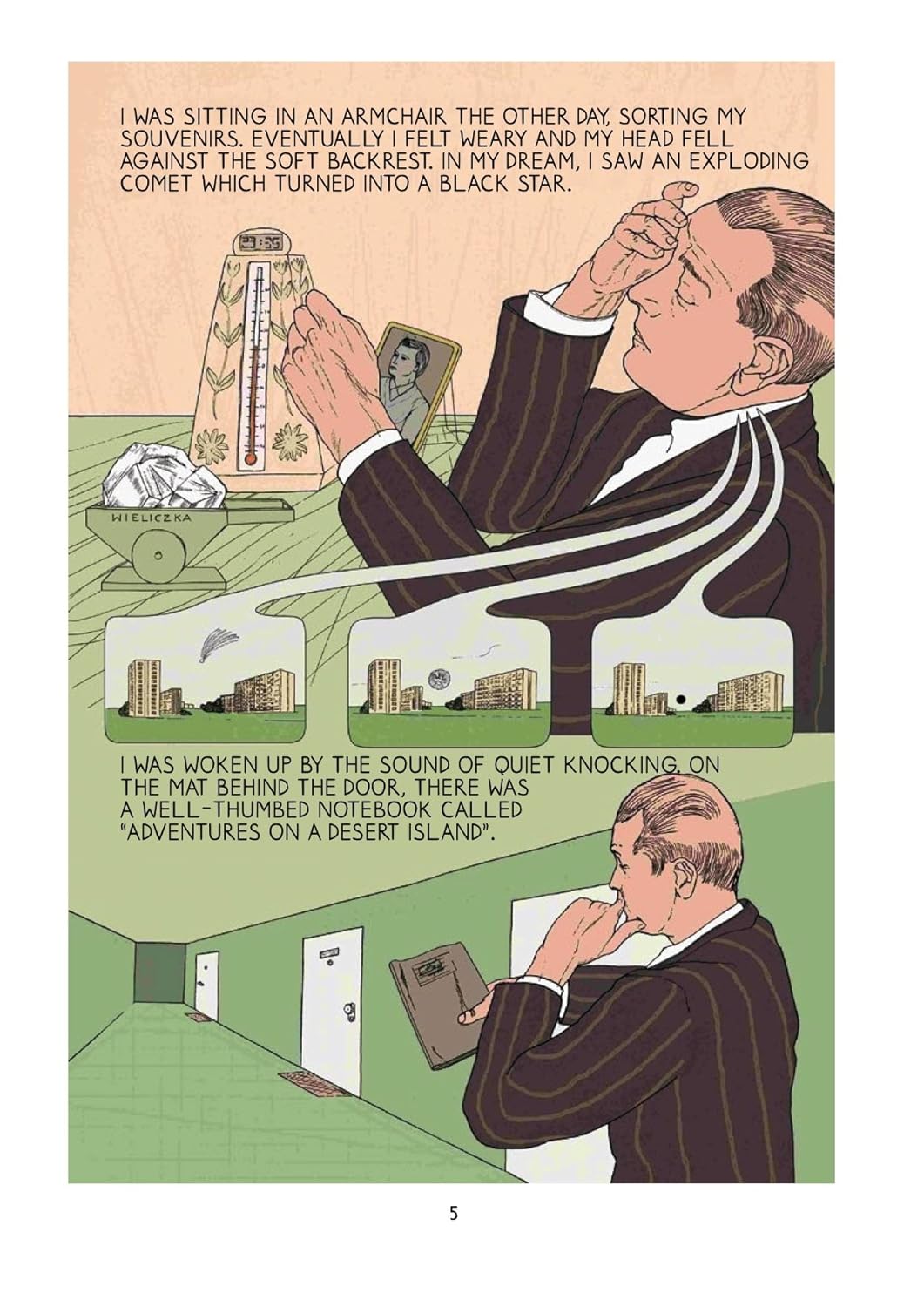 Проснувшись от ужасного сна, мужчина находит за входной дверью дневник и начинает его читать. Он следит за историей человека, отправившегося в круиз в Африку. Корабль затонул из-за цунами, но он выжил и оказался на таинственном необитаемом острове. Сюжет состоит из странных историй, своеобразный характер которых подчеркивается стилизованным языком автора.