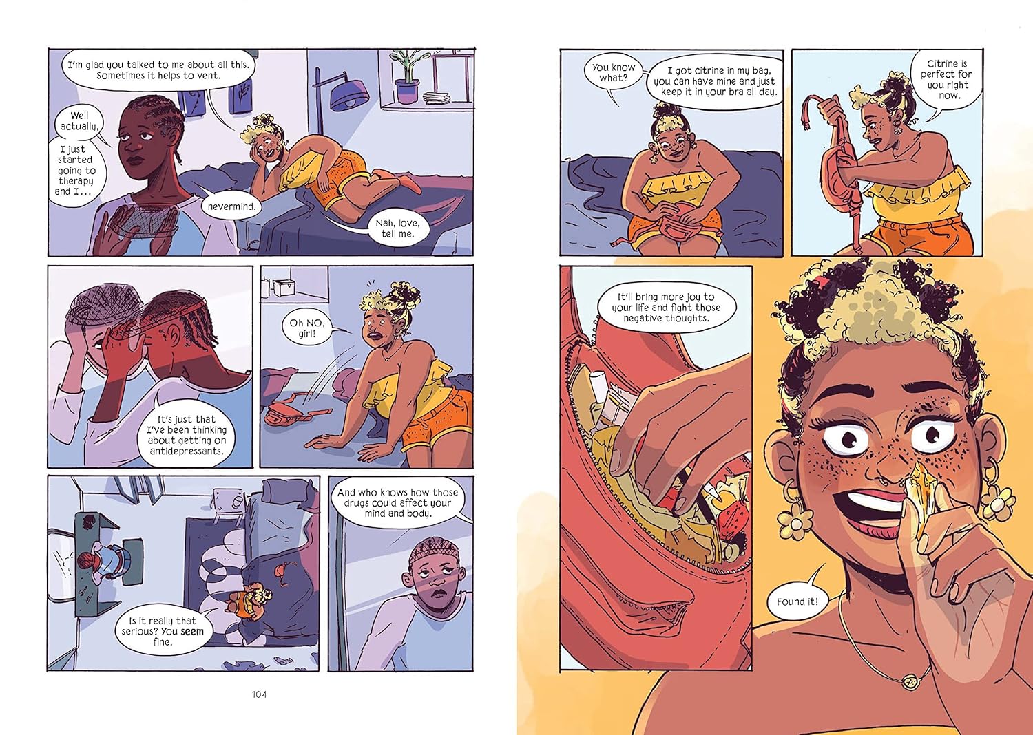 «Графический роман, посвященный любви к дружбе и прическам чернокожих женщин... каждая история отличается уникальной цветовой палитрой, отражающей главную героиню и настроение».