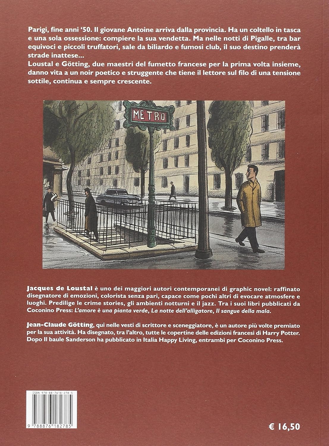 Париджи, отлично, 50-й год. Джоване Антуан прибыл из провинции. Ha un coltello in tasca e una sola ossessione: compiere la sua vendetta. Ma nelle notti di Pigalle, tra bar equivoci e piccoli truffatori, sale da biliardo e fumosi club, il suo destino prenderà strade strade inattese... Лусталь и Геттинг, должный маэстри французских огней для первого внутреннего напряжения, danno vita a un noir поэтический и строгий che Tiene il Lettore sul Filo di una taine sottile, continua e semper Crescente.