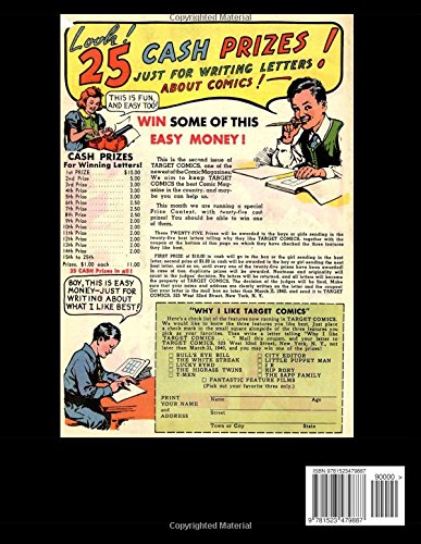 Комиксы Target Comics выходили с 1940 по 1949 год и насчитывали 105 выпусков, в которых участвовали одни из лучших сценаристов и художников того времени. Независимо от того, предпочитаете ли вы супергероев, реальные приключения или комедию, Target Comics предлагал все это ежемесячно! Переиздания комиксов от Golden Age Reprints и UP History and Hobby воспроизводятся с оригинальных классических комиксов и иногда отражают несовершенства книг, которым уже несколько десятилетий. Эти книги постоянно обновляются с использованием наилучшей доступной версии - если вы когда-либо останетесь недовольны качеством или впечатлениями от книги, верните ее нам, и мы обменяем ее на другую или предложим обновление по мере появления новых файлов.