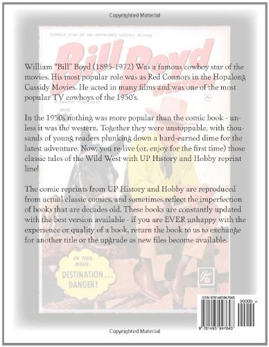 Уильям «Билл» Бойд (1895-1972) был знаменитой звездой вестернов. Его самой популярной ролью была роль Реда Коннорса в фильмах о Хопалонге Кэссиди. Он снялся во многих фильмах и был одним из самых популярных телевизионных ковбоев 1950-х годов. В 1950-е годы ничто не было популярнее комиксов - за исключением вестернов. Вместе они были неудержимы, тысячи юных читателей тратили с трудом заработанные деньги на новые приключения. Теперь вы можете заново пережить (или насладиться впервые) эти классические истории Дикого Запада с переизданиями от UP History and Hobby! Переиздания комиксов от UP History and Hobby воспроизводятся с оригинальных классических комиксов и иногда отражают несовершенства книг, которым уже несколько десятилетий. Эти книги постоянно обновляются с использованием наилучшей доступной версии - если вы когда-либо останетесь недовольны качеством или удобством использования книги, верните ее нам, и мы обменяем на другую или предоставим вам обновленную версию по мере появления новых файлов.