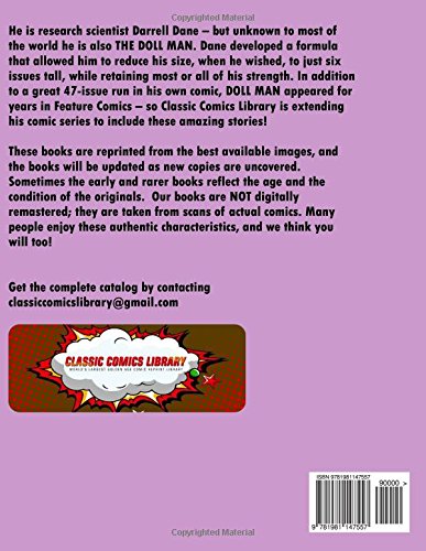 НАПИШИТЕ НАМ ПО ЭЛЕКТРОННОЙ ПОЧТЕ, ЧТОБЫ ПОЛУЧИТЬ НАШ ГИГАНТСКИЙ КАТАЛОГ КЛАССИЧЕСКИХ КОМИКСОВ! Он - научный сотрудник Даррелл Дейн, но большинству людей в мире неизвестно, что он также является ЧЕЛОВЕКОМ-КУКЛОЙ. Дейн разработал формулу, которая позволяла ему уменьшаться в размерах, когда он этого хотел, до шести высот, сохраняя при этом большую часть или всю свою силу. В дополнение к великолепной серии из 47 выпусков собственного комикса, ЧЕЛОВЕК-КУКЛА много лет появлялся в Feature Comics - поэтому Classic Comics Library расширяет его серию комиксов, чтобы включить эти удивительные истории! Эти книги перепечатаны с лучших доступных изображений, и книги будут обновляться по мере обнаружения новых экземпляров. Иногда ранние и более редкие книги отражают возраст и состояние оригиналов. Наши книги НЕ подвергаются цифровой ремастерингу; они созданы на основе сканов настоящих комиксов. Многим людям нравятся эти аутентичные характеристики, и мы думаем, что вам они тоже понравятся!
