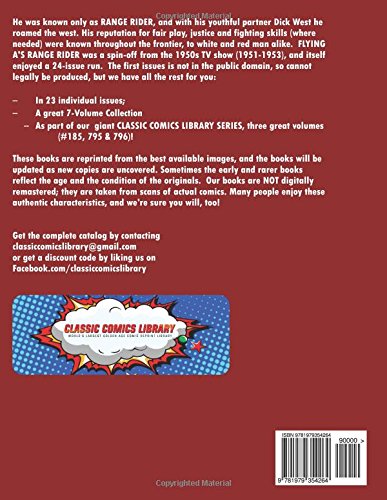 Он был известен только как ВСАДНИК-РАНЧО, и вместе со своим молодым напарником Диком Вестом героически странствовал по Дикому Западу. Его репутация честного игрока, борца за справедливость и бойца (где это было необходимо) была известна по всей границе, как белым, так и краснокожим. «ВСАДНИК-РАНЧО ФЛАЙИНГИ» был спин-оффом телешоу 1950-х годов (1951-1953) и сам по себе насчитывал 24 выпуска. Первый выпуск не является общественным достоянием, поэтому его легально нельзя издать, но у нас есть для вас все остальные: - В 23 отдельных выпусках; - Великолепное 7-томное собрание; - В рамках нашей гигантской серии «Библиотека классических комиксов» объемом более 350 страниц, три замечательных тома (№ 185, 795 и 796)! Эти книги перепечатаны с лучших доступных изображений, и каталог будет обновляться по мере обнаружения новых экземпляров. Иногда ранние и более редкие книги отражают возраст и состояние оригиналов. Наши книги НЕ подвергаются цифровой ремастерингу; они созданы на основе сканов настоящих комиксов. Многим людям нравятся эти аутентичные характеристики, и мы уверены, что вам они тоже понравятся!