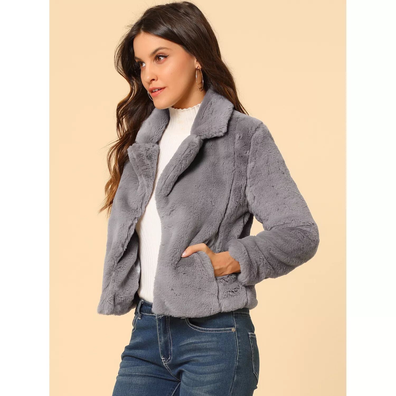 Женская зимняя модная свободная укороченная куртка из искусственного меха, пальто ALLEGRA K, белый
