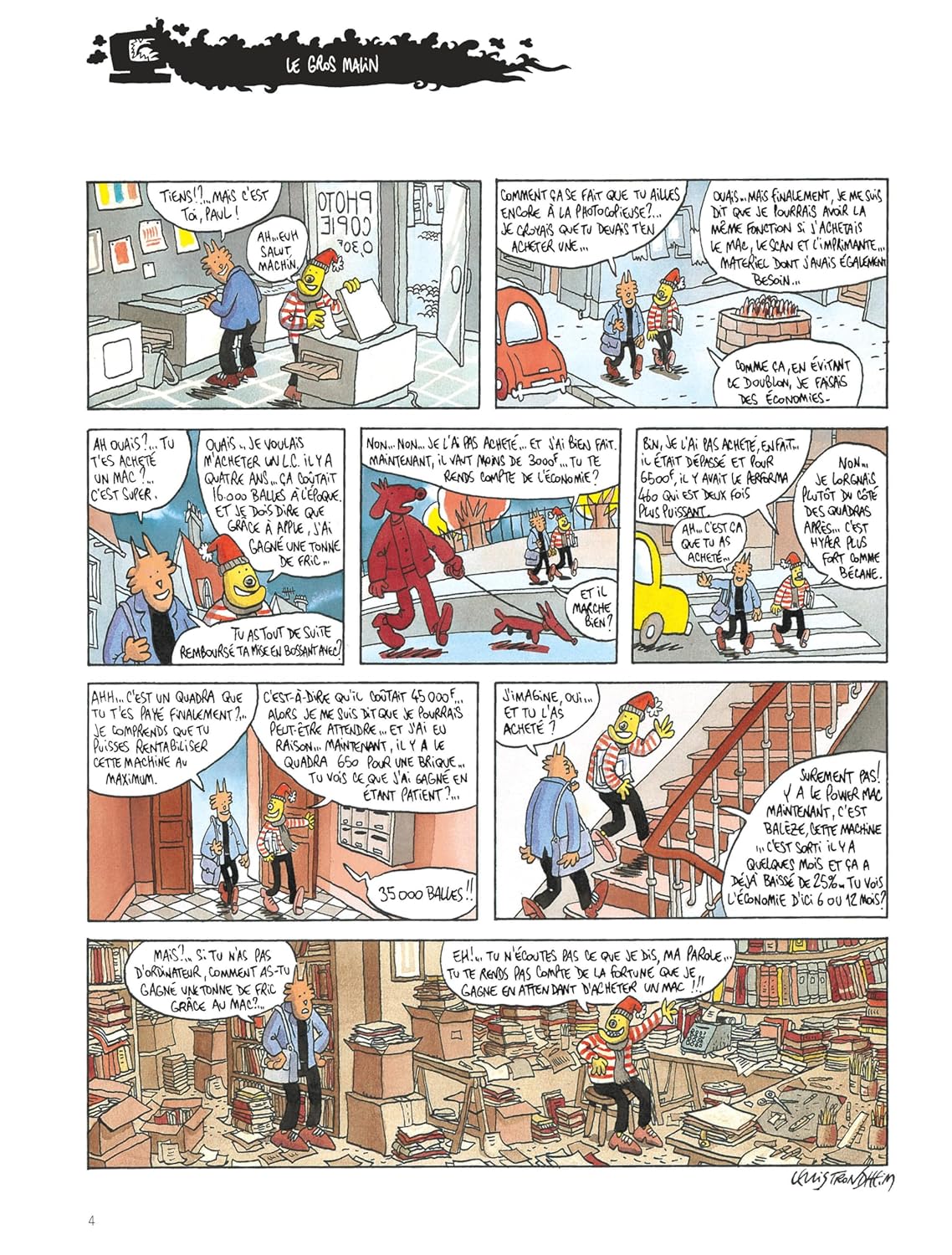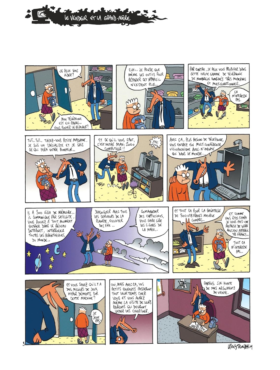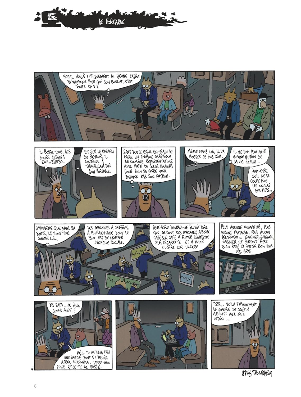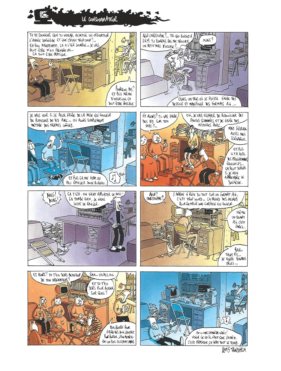 В 1964 году в Фонтенбло Льюис Тронхейм пережил детство, скуку и подростковый возраст ne rien faire. Втроем, он поступил в колледж, чтобы подражать сыну двоюродному брату. Ванная комната, il fait une première E ? Sciences et Mécanique, fraiseuse?, il y est Tellement nul qu'on le rapatrie en philo-lettres. Un bac de philo en poche, il se dans la Bande dessinée parce qu'il a зависть рассказчика истории и que, côté dessin, il tout à apprendre; Пар дух противоречия и научного любопытства, в некотором роде. Vers 25 ans, вооруженный фотокопией, он редактирует журнал для фанатов целиком; иль 12 цифр. Trouvant que l'art miniliste a ses limites, il décide d'apprendre à dessiner et attaque les 500 page de "Lapinot et les carottes de Patagonie" (L'Association et le lézard, 1992; reed. L'Association, 1995). В 1990 году фонд с пятью другими художниками создал редакционную структуру L'Association. Puis il découvre qu'on peut gagner sa vie en faisant ce métier. Il quitte Paris pour le Sud, отклоняющийся папа и entre chez Dargaud в 1995 году с 4-м томом "Грозных приключений Лапино". Coup de coeur d'Angoulême, pour l'album "Slaloms" (L'Association, 1993), в 1994 году, в 1996 году он встретил Тотем де ла Десине в Салоне Монтрей. «Донжон» (Делькур), в стиле конца года, 1990 год. Делькур, имена в сериале «Молодость», как «Allez raconte» (2001-2003), с Хосе Паррондо, «Король катастрофы» (2011-2005), созданный Фабрисом Пармом, а также «Kaput & Zösky» (2002-2003), который реализовался полностью. В эти годы, плюс альбомы Льюиса Тронхейма, адаптированные и аниме-рисунки, например, "La Mouche" (Le Seuil, 1995; 65 эпизодов, распространившихся по Франции, 3 в сентябре 2000 года). В 2004 году он стал режиссером коллекции «Шампунь» Делькура, чтобы реализовать несколько альбомов. Cela ne l'empêche pas de créer и de publier de nouvelles séries chez d'autres éditeurs. Айнси, в 2011 году, начнет "Ральф Ажам" (Дюпюи), не пропустите 7-й том в 2014 году; В 2014 и 2015 годах вышли два эпизода «Мэгги Гаррисон» (Дюпюи), снятые Стефаном Уари. Тронхейм стал кавалером Ордена искусств и литературы в 2005 году и получил Гран-при Международного фестиваля искусств в Ангулеме.