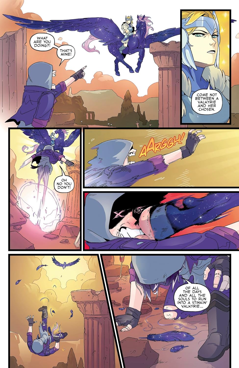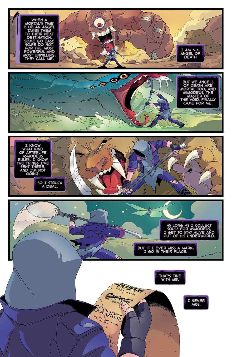 Никс, внештатный ангел смерти и лучший жнец Подземного мира, промахивается мимо цели, попавшей в руки мятежной валькирии - а она никогда не промахивается! Она отправляется через девять миров в Вальхаллу, чтобы вернуть свою награду, но загробный мир оказывается совсем не таким, каким она его себе представляла. Никс встречает странных врагов, еще более странных друзей и сражения гораздо более сложные, чем она могла себе представить. Теперь, вынужденная объединиться с неожиданным партнером, Никс должна будет выиграть турнир героев Одина, если хочет сохранить свою работу и, что еще важнее, свою душу.
