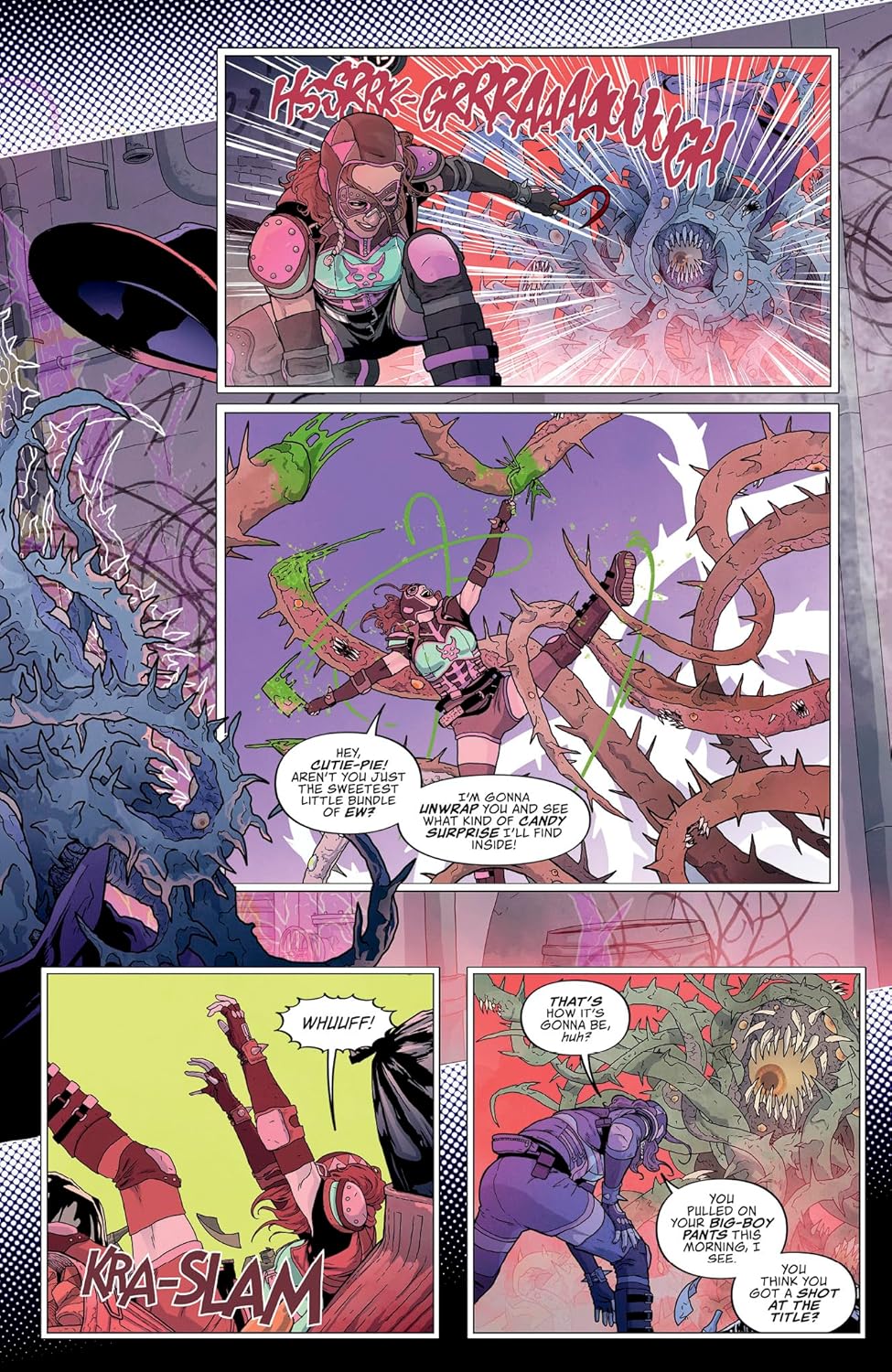 Фанатка ужасов, превратившаяся в мстительницу, Джампскэр может создать любое кровавое оружие из любого кровавого фильма, который она смотрела. Используя эту силу, она стала силой добра в Эмпайр-Сити… и самым популярным супергероем в мире! Однако даже со всеми своими способностями она, возможно, не сможет спасти свою отчужденную сестру из лап гангстера, превратившегося в монстра - грайндхауса! Особенно с бандой жутких фанатиков, называемых «Мрачным Соглашением», которые стоят у нее на пути!