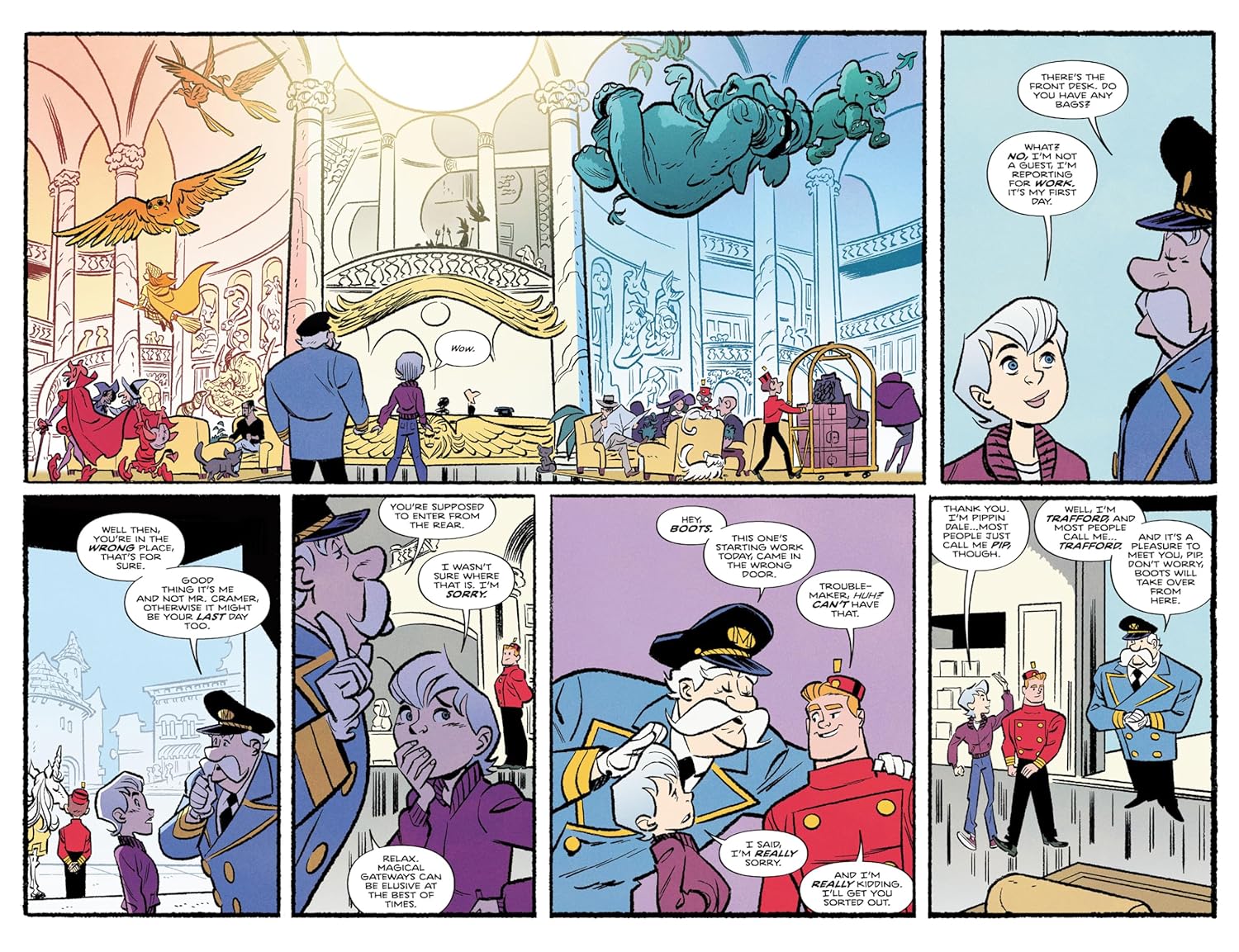 Присоединяйтесь к Пиппин (Пип) Дейл, которая начинает свою новую работу посыльной (и стажером детектива) в эксклюзивном отеле «Мейнард» для волшебников (и людей, обладающих магическими способностями). Этот роскошный, удивительный отель находится прямо под носом у обычных жителей Сан-Франциско, где останавливаются настоящие маги, ведьмы, мистические персонажи и фантастические существа.