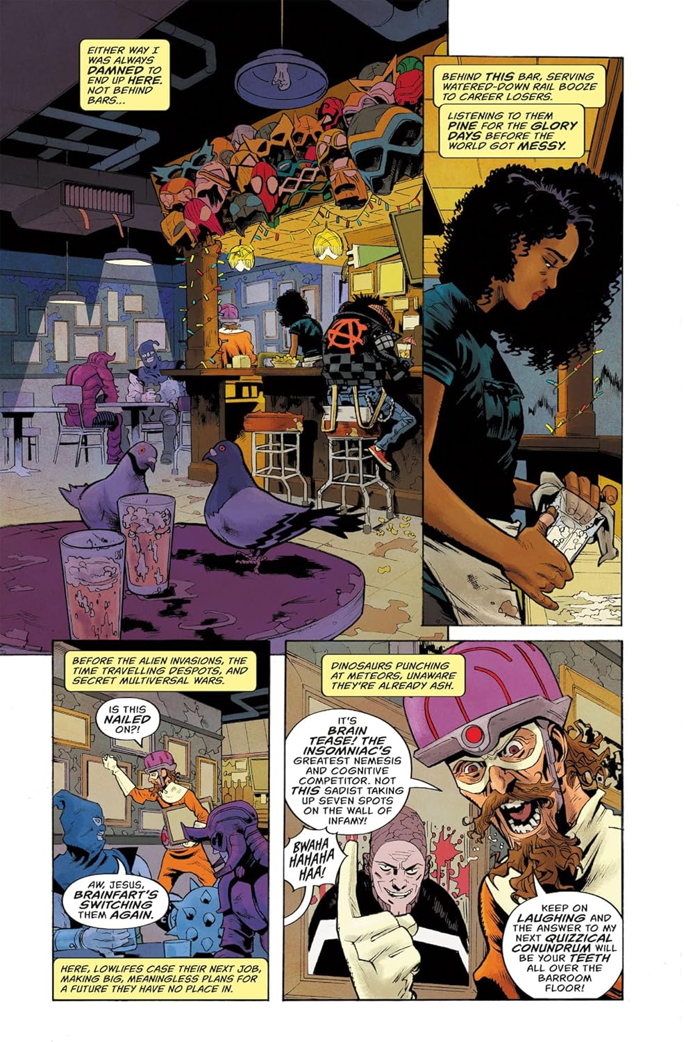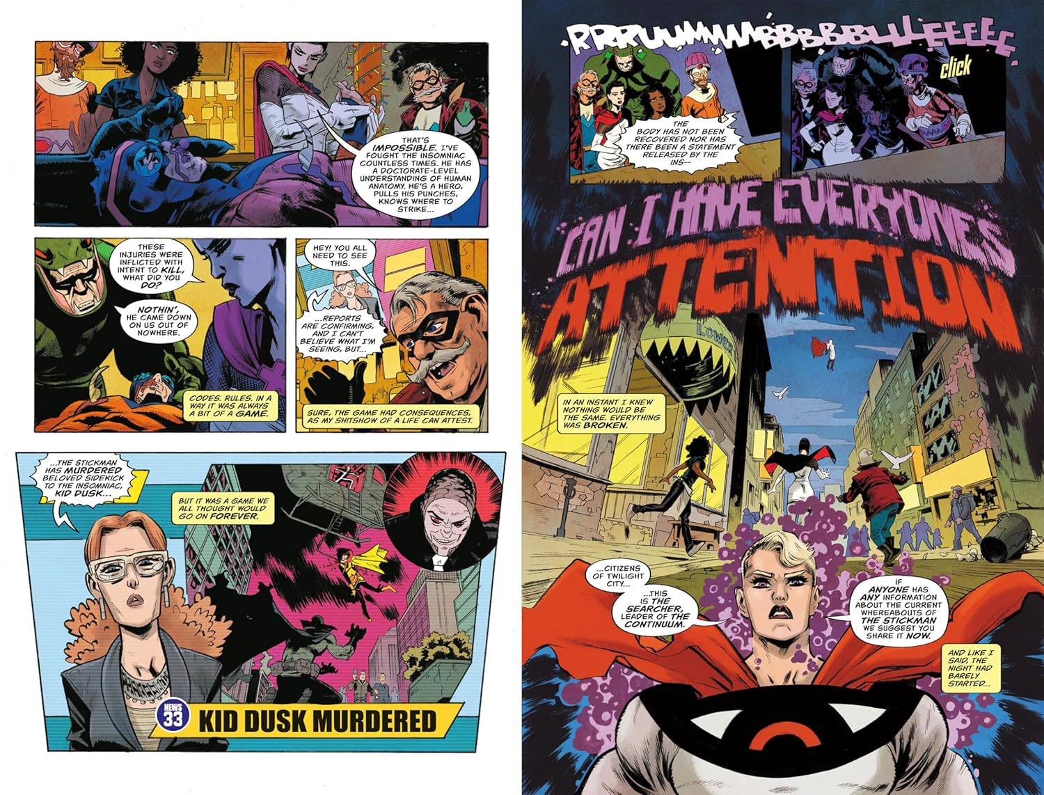 Успешная серия комиксов от Паттона Освальта и Джордана Блума, шоураннеров сериала Marvel «МОДОК» на Hulu, и суперзвездного художника Скотта Хепберна (автора «Орхидеи» Тома Морелло), представляет собой графическую криминальную драму о супергероях и злодеях, а также о последних вздохах красочных и невинных дней серебряного и бронзового веков, прежде чем они будут втянуты в суровую современную эпоху.