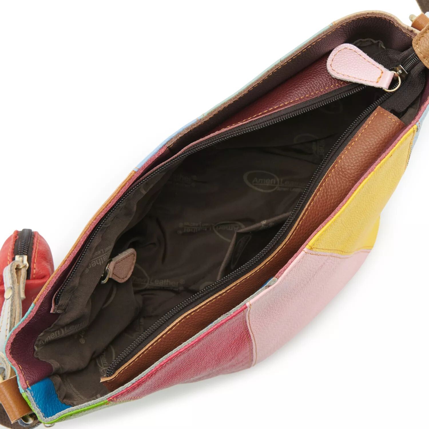 Яркие лоскутные узоры и призматические цвета этой сумки через плечо из кожи AmeriLeather дополняют друг друга и делают ее вашим следующим любимым аксессуаром.