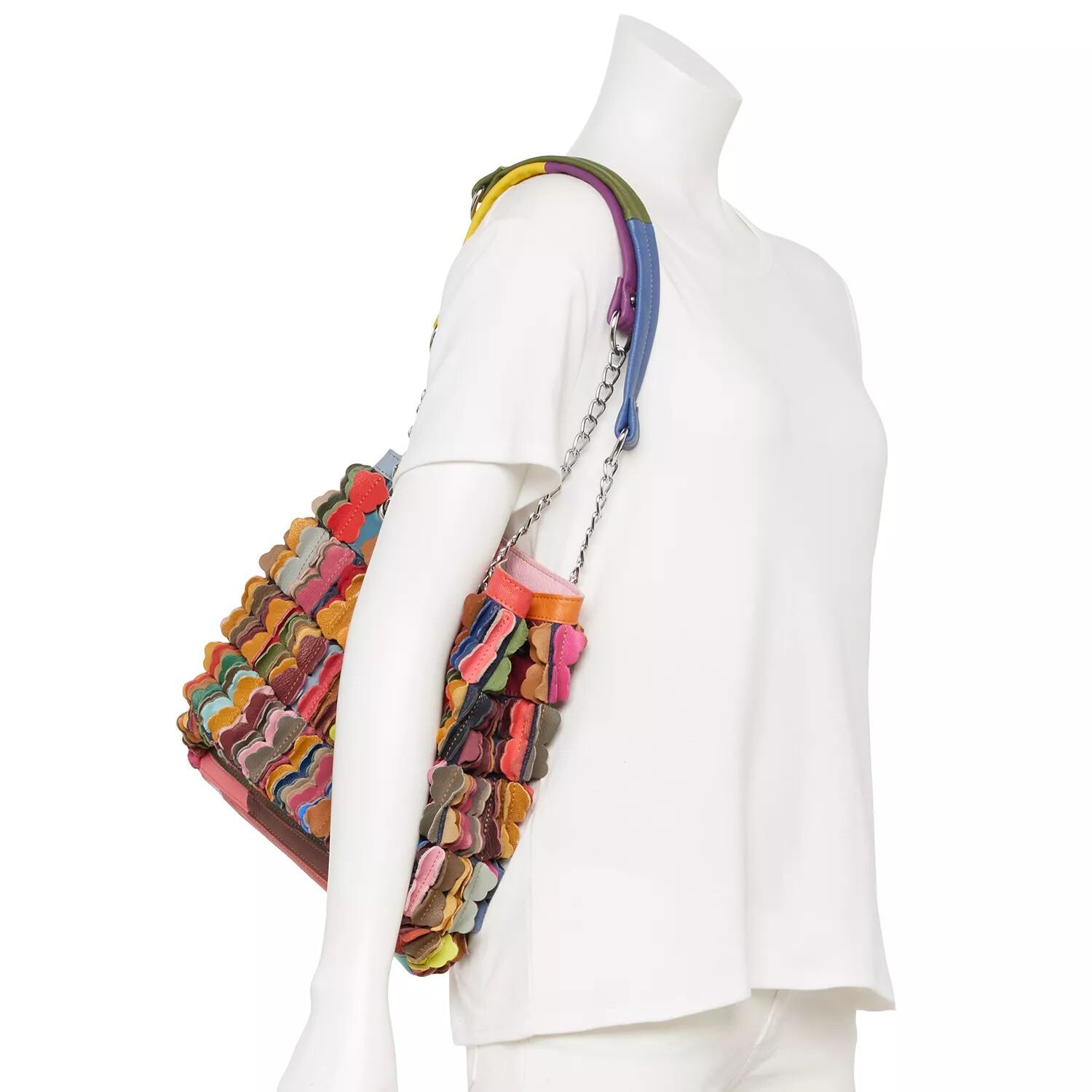 Вам понравится яркий стиль этой кожаной сумки через плечо AmeriLeather Papillon.