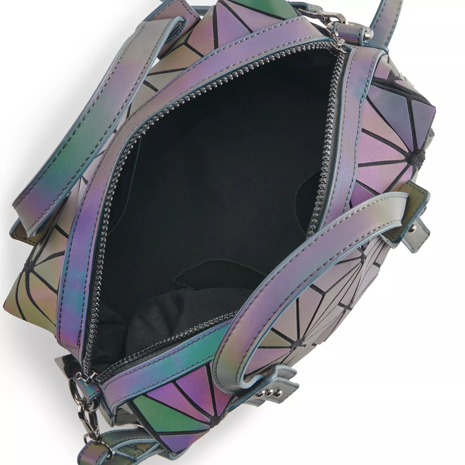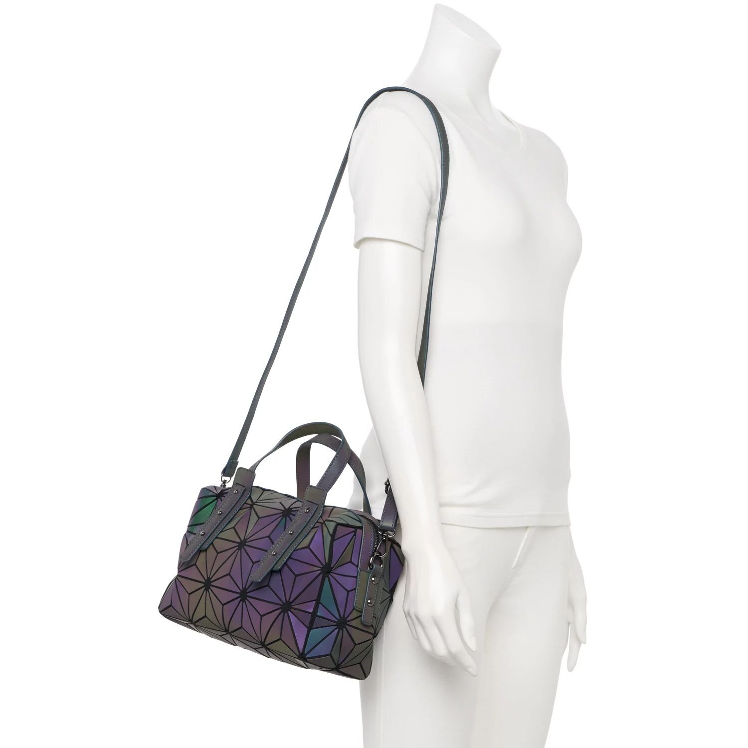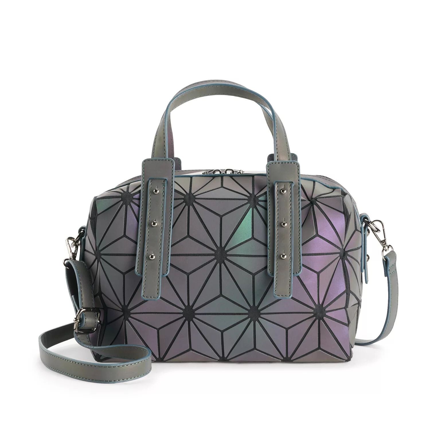Светящаяся сумочка AmeriLeather Medina с геометрическим рисунком сдержанных темных оттенков подойдет к любому наряду, а в темноте, если на нее светиться, они превратятся в сияющие драгоценные камни, которые добавят вам внутреннего блеска.