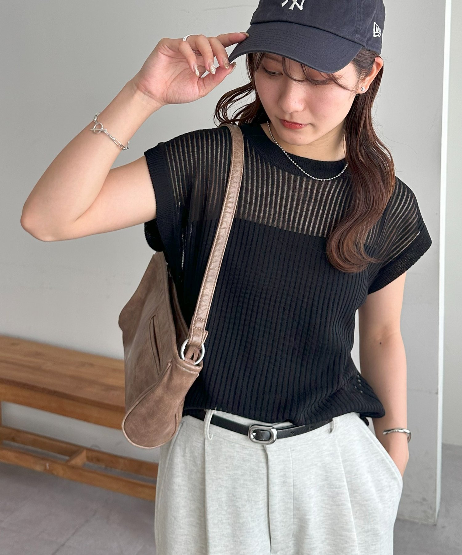 - Прозрачный трикотажный топ с оптимальным количеством прозрачности и вертикальной ребристой текстурой для элегантного образа