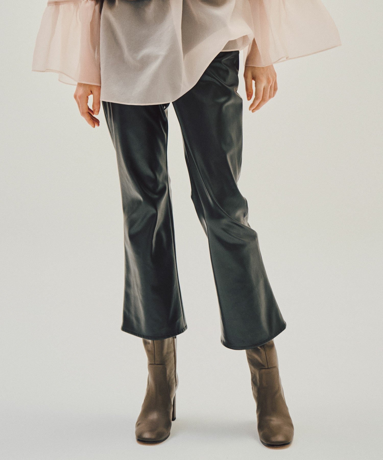 Эти популярные брюки были обновлены и переизданы. Расклешенные брюки сочетают в себе привлекательный силуэт и комфорт. Любимые с момента запуска бренда, эти невероятно популярные расклешенные брюки теперь вернулись в том же материале из искусственной кожи, который был так популярен в прошлом. Сохраняя современный вид и силуэт, они были обновлены для еще большего комфорта. Короткий, до щиколотки, смело расклешенный силуэт и высокая талия визуально удлиняют и стройнят ноги, делая эти брюки привлекательными с любого ракурса. В этой обновленной версии талия была немного занижена, и добавлена эластичная резинка для комфортной посадки. Эластичный материал ощущается как леггинсы, обеспечивая свободу движений и делая их идеальными для повседневной носки. Эти универсальные брюки дополняют широкий спектр стилей, от повседневного до современного. [COLUMN] Как колонны, поддерживающие красивое здание, COLUMN — это бренд для современной женщины, с прочной основой, но с гибкими, эластичными изгибами по краям.