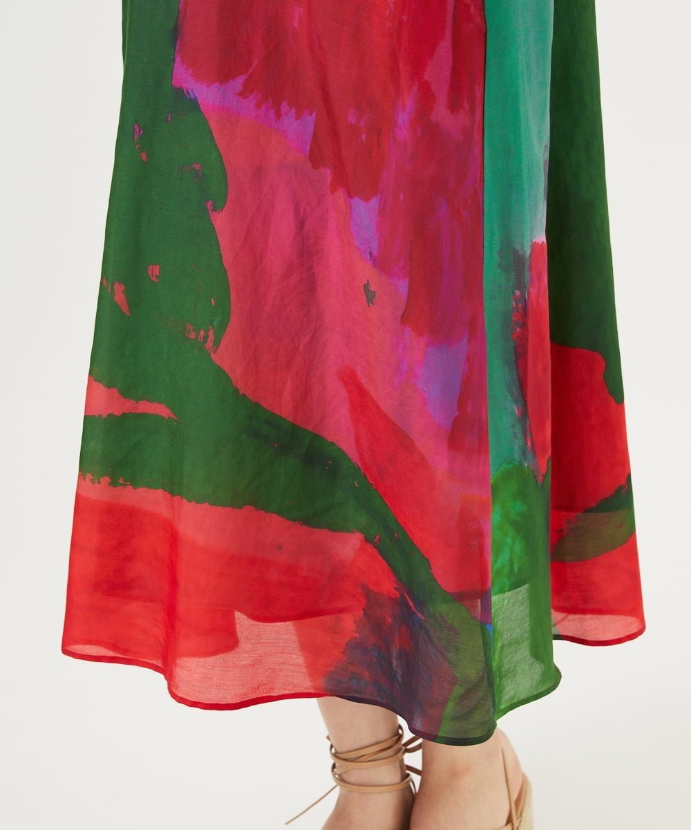 Это платье украшено рисунками, выполненными в любимых цветах Сибиллы: красном, сиреневом, фиолетовом и зеленом, и сшито из воздушного материала.