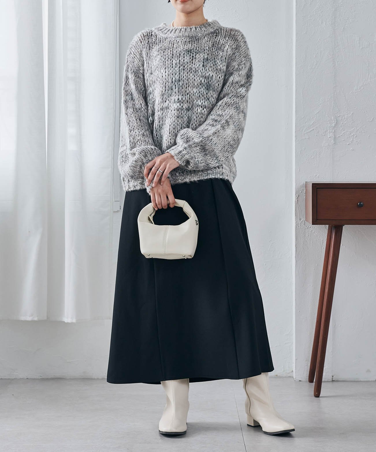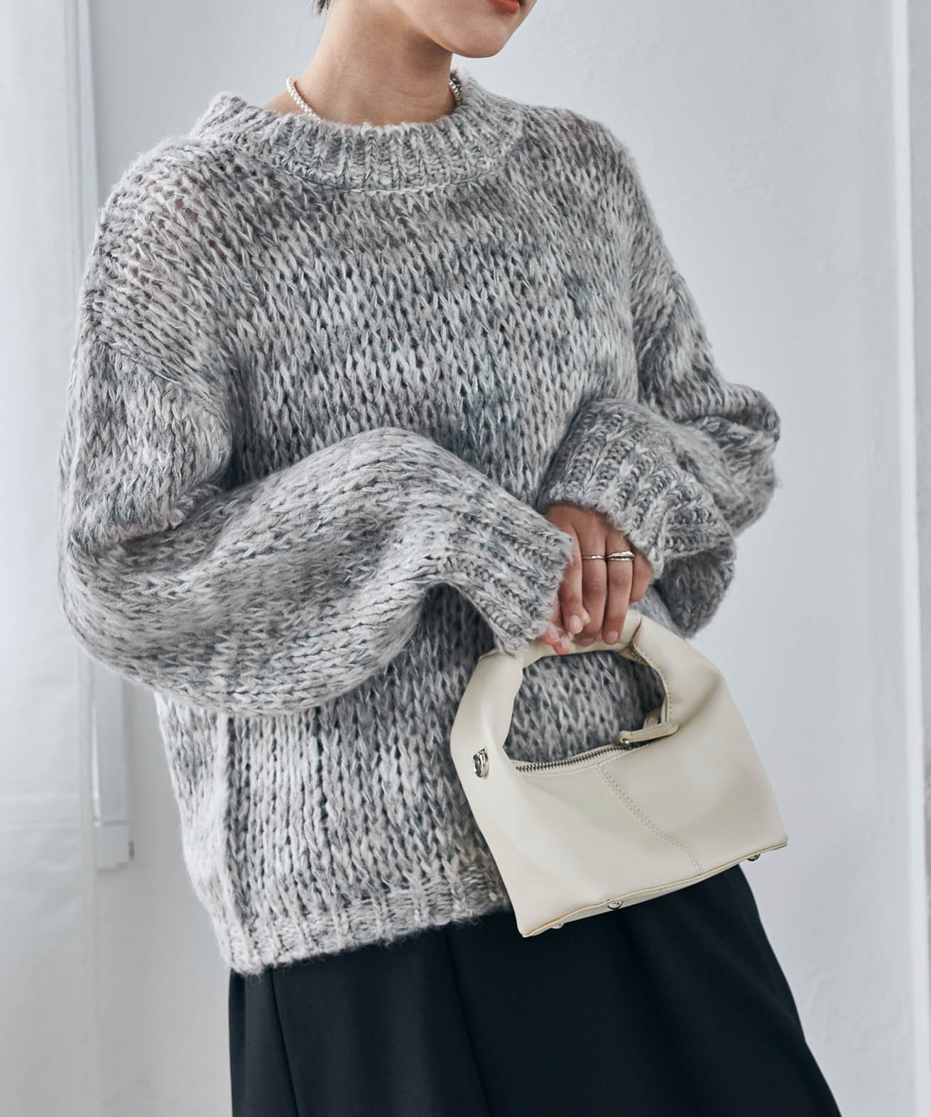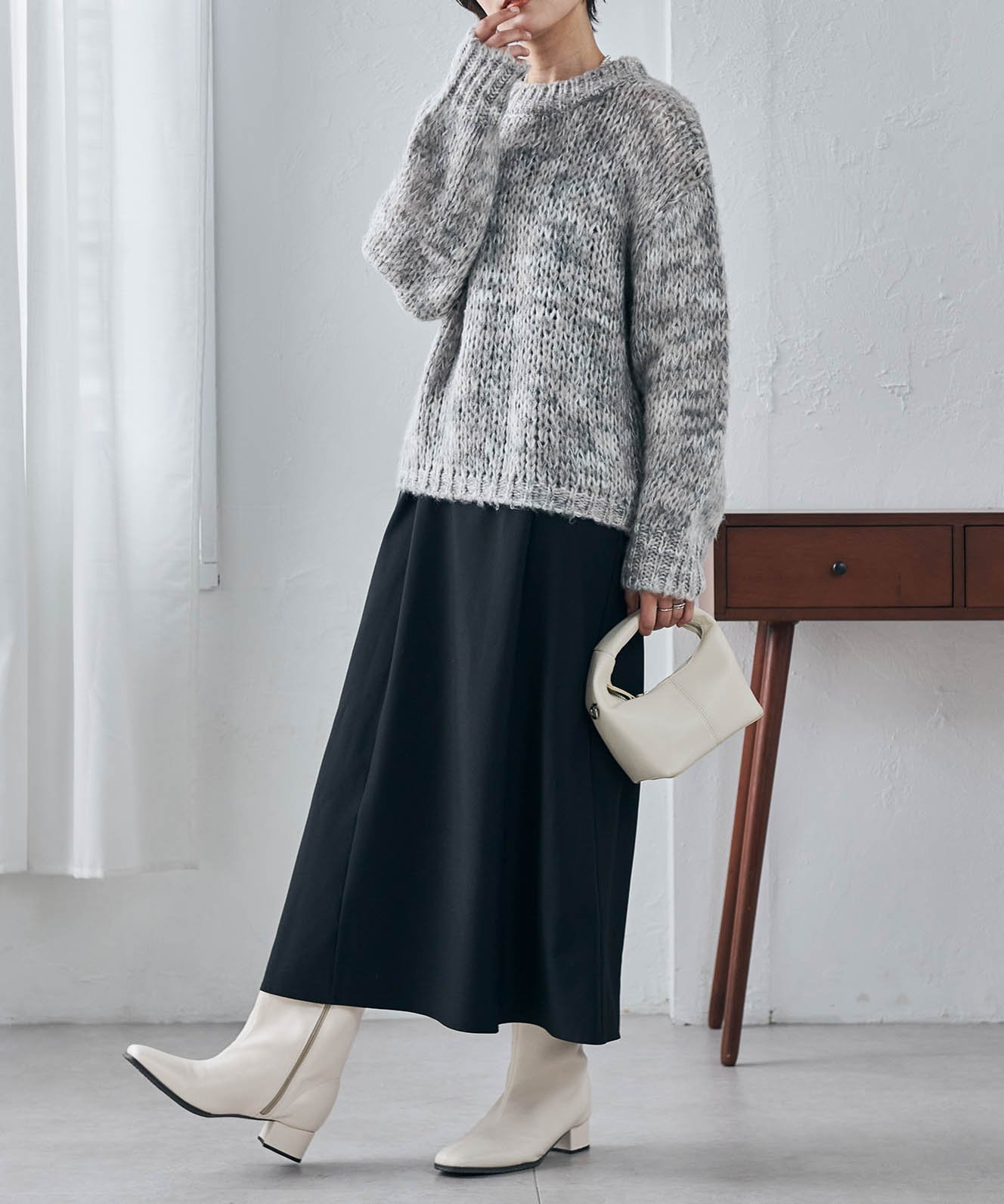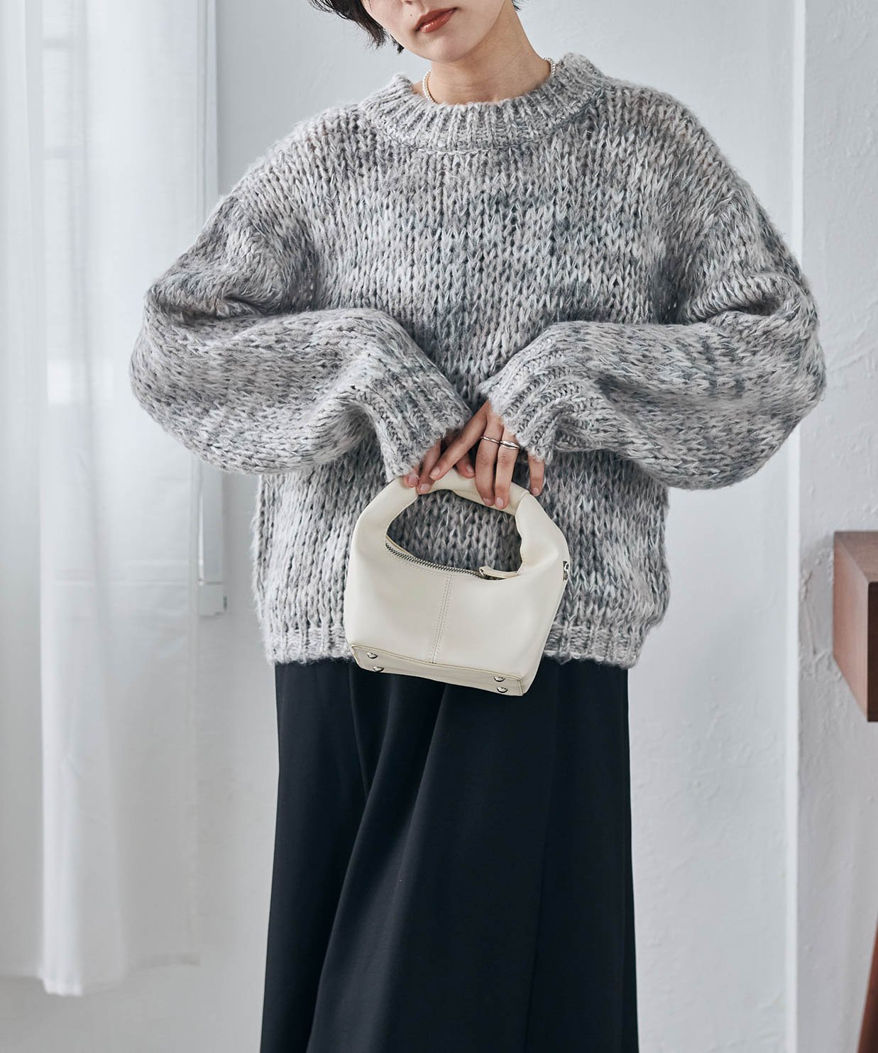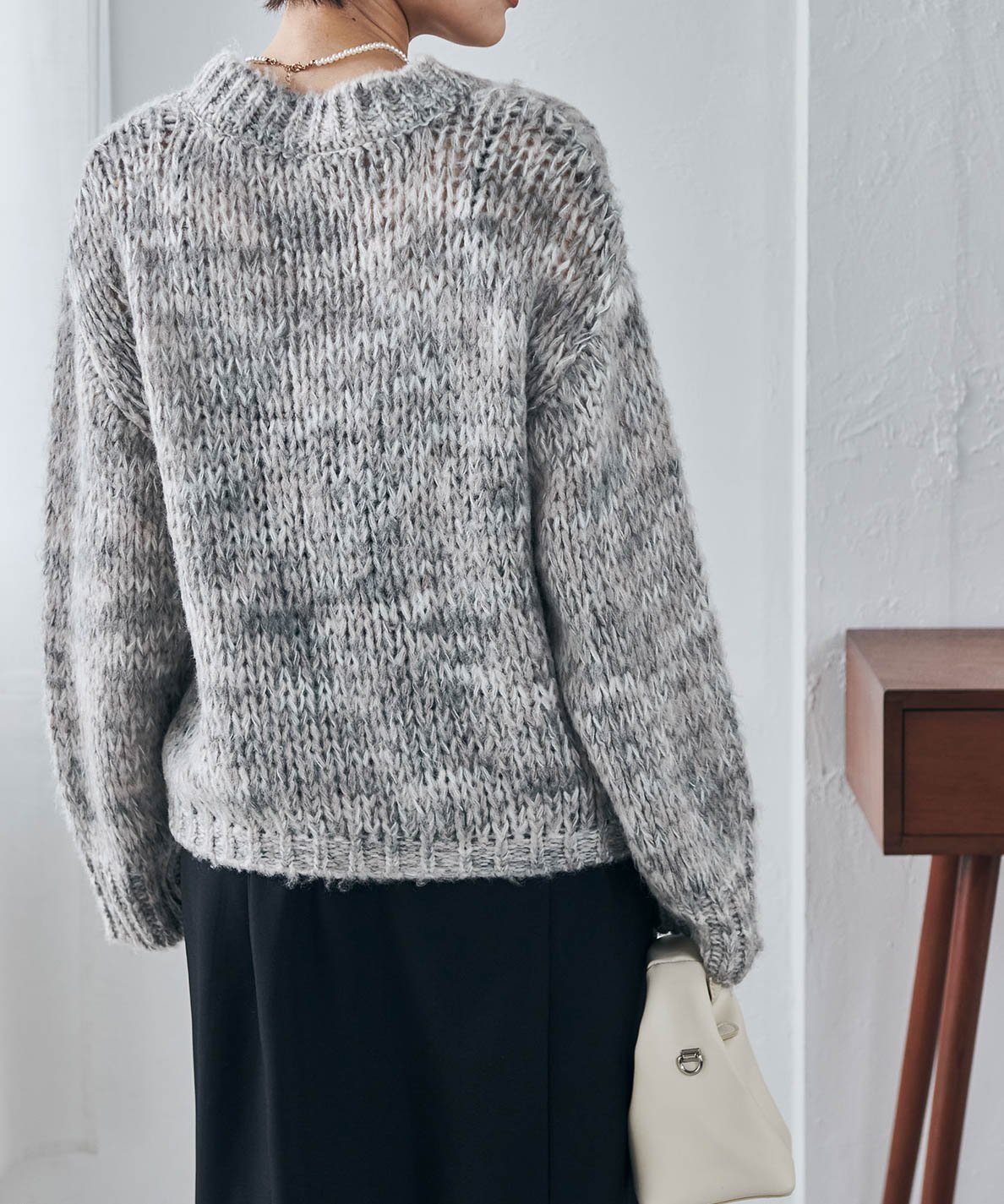 - Спущенные плечи и свободный крой делают его идеальным для многослойных образов с рубашкой◎