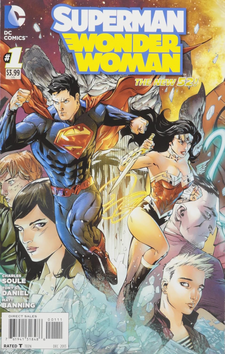 СУПЕРМЕН ЧУДО-ЖЕНЩИНА #1 (Сценарий: Чарльз Соул, Художник: Тони С. Дэниел, Мэтт Батт Баннинг, Обложка: Тони С. Дэниел) Начинается новая смелая серия, повествующая об отношениях между Человеком из стали и Принцессой-воительницей. Восходящая звезда, сценарист Чарльз Соул, в сотрудничестве с любимым фанатами художником Тони С. Дэниелом рассказывает историю любви, которая потрясет сами звезды. Эти два супергероя любят друг друга, но не все разделяют их радость. Некоторые боятся ее, некоторые испытывают ее, а некоторые готовы убить за нее. Говорят, любовь - это поле битвы, но когда дело касается Супермена и Чудо-женщины, это предвещает Судный день! Этот выпуск отличается потрясающей разворачивающейся обложкой, которая раскрывается в триптих с Суперменом и Чудо-женщиной в центре!