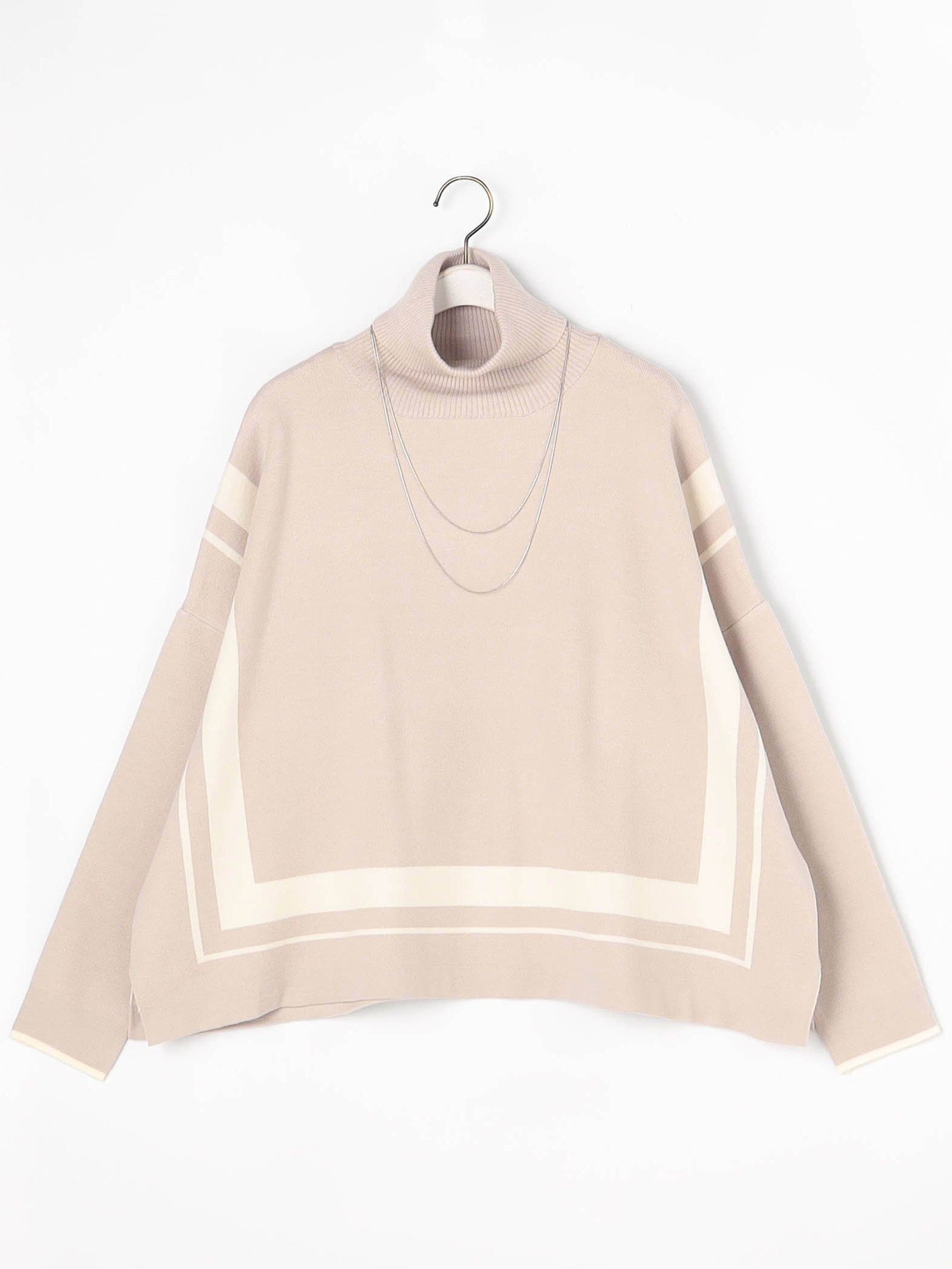 Вязаный свитер с квадратными линиями и ожерельем