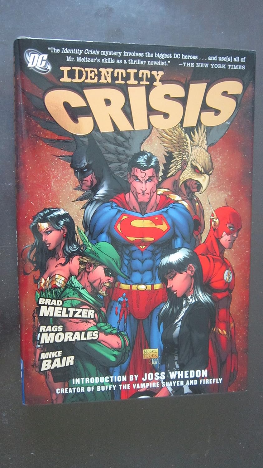 «Кризис идентичности» - это сборник из семи выпусков комиксов, которые необычайно резко освещают жизнь ведущих супергероев DC Comics. После жестокого убийства Сью Дигби, жены второстепенного героя, Человека-Эластика, его товарищи ищут убийцу, пытаясь защитить своих близких от подобной участи. В ходе поисков выясняется, что подозреваемый, доктор Лайт, много лет назад жестоко изнасиловал Сью, и одна из героинь затем использовала свои способности, чтобы магическим образом провести ему лоботомию, стерев этот инцидент из его памяти. По мере развития сюжета возникают другие этические дилеммы, и другие второстепенные персонажи встречают жестокий конец. Автор триллеров Мельцер создает в серии убедительный сюжет и яркие образы персонажей, хотя детальная графика художника Рагса Моралеса, возможно, несколько преувеличена. Очевидное намерение показать высокую цену героизма достигнуто, но выглядит манипулятивным и сенсационным из-за шокирующего эффекта убийства персонажа, Сью, которая существовала на протяжении 40 лет.^B Несмотря на свою скандальность, или, возможно, именно благодаря ей, сериал пользовался популярностью в средствах массовой информации и имел огромные первоначальные продажи; ожидается спрос на сборник. Гордон Флэгг