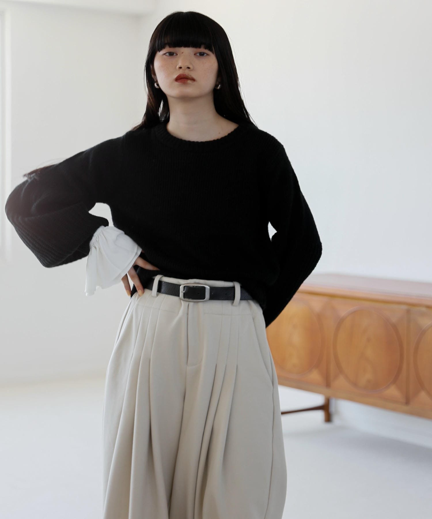 ・Черный: Добавьте объемные манжеты с оборками, чтобы создать классический образ с этим черным трикотажем. Дизайн рукавов добавляет нотку элегантности к присущей черному цвету прохладе.