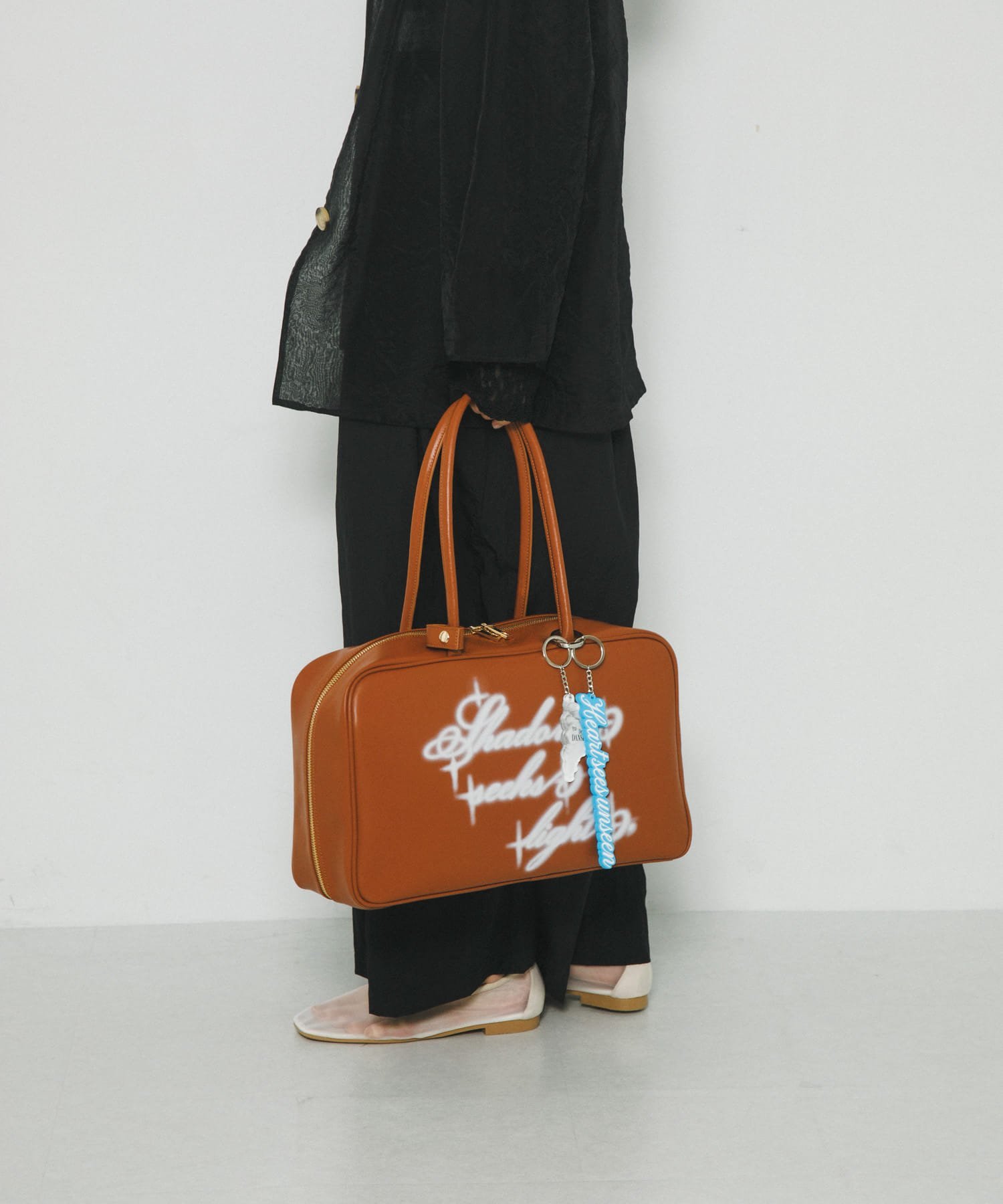 И большая, и маленькая сумки комплектуются брелоком в виде буквы-ключа с надписью «Сердца видят солнце». (The heart see the what is invisible).