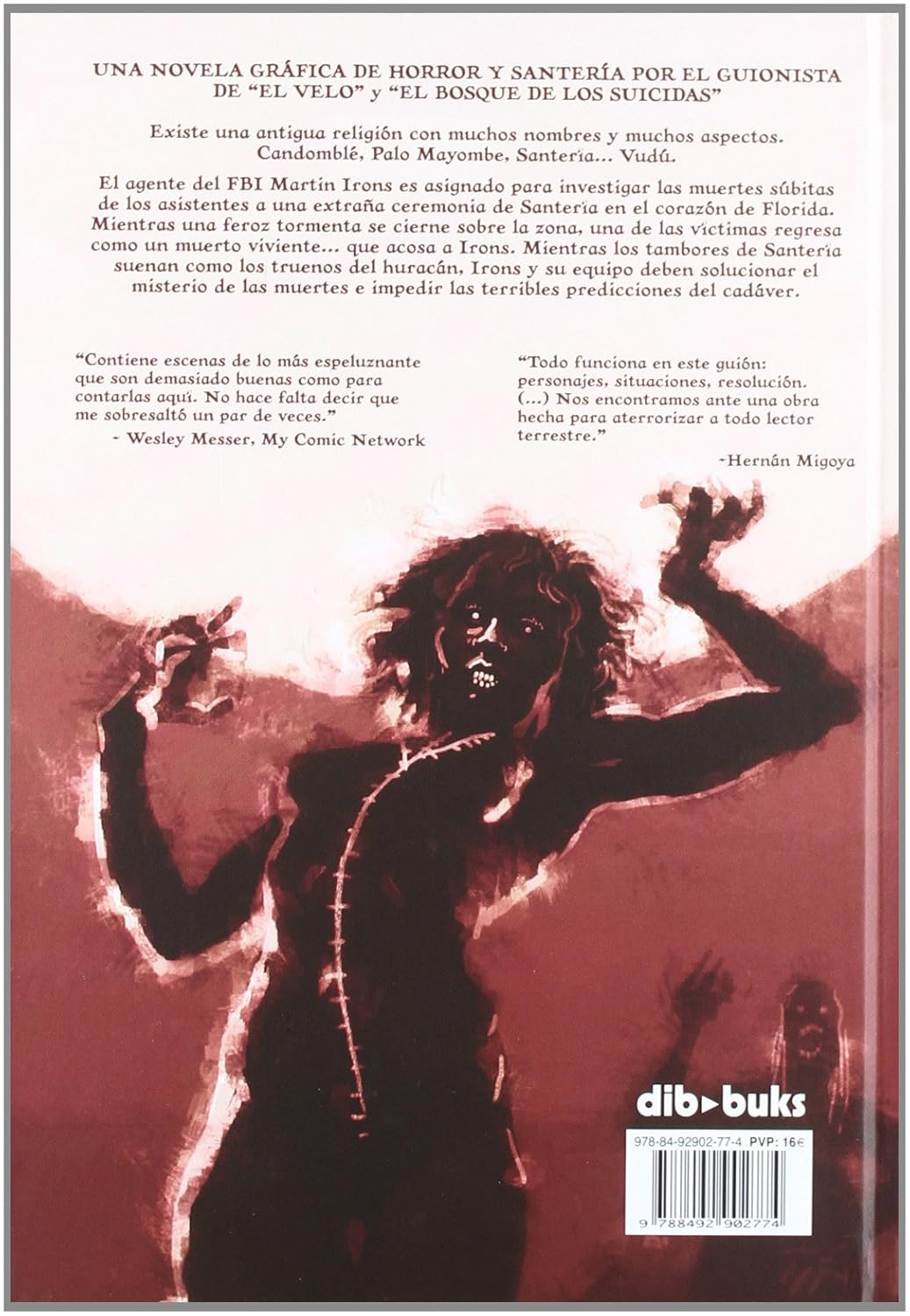 НОВАЯ ГРАФИЧЕСКАЯ ГРАФИКА УЖАСОВ И САНТЕРИЯ ДЛЯ ГРУПП «ВЕЛО» и «БОСК СУИЦИДАС» Существует антигуанская религия с множеством имен и аспектов. Кандомбле, Пало Майомбе, Сантерия... Вуду. Агент ФБР Мартин Айронс назначен для расследования смертей помощников на дополнительной церемонии Сантерии в Коразоне Флориды. В эти минуты жестокие мучения, когда они остаются в зоне, жертвы возвращаются как мертвая жизнь... que acosa a Irons. Мьентрас лос тамборес де Сантерия суэнан как лос истинные ураган, Айронс и его оборудование должны разрешить тайну смерти и воспрепятствовать ужасным предсказаниям трупа. «Lee este comic si te gusta pasar miedo, con mysterio, oscuras religieses tribales que decapitan pollos» - Bloody Disgusting.com veces», - Уэсли Мессер, My Comic Network.