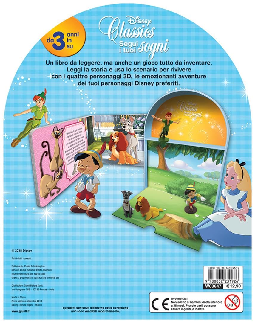 Книга для чтения, и еще одна игра, полная изобретения. Оригинальный и забавный комплект для игры с любимыми персонажами Диснея. Серия страстных приключений, в которой Питер Пэн и Алиса оказались в роли Пиноккио, на пути к реальности. С 3D-статуэткой Quattro вы можете воспроизвести повествовательную историю в книге, а затем изобрести новую историю, используя аллегорический сценарий. Это было 3 года.