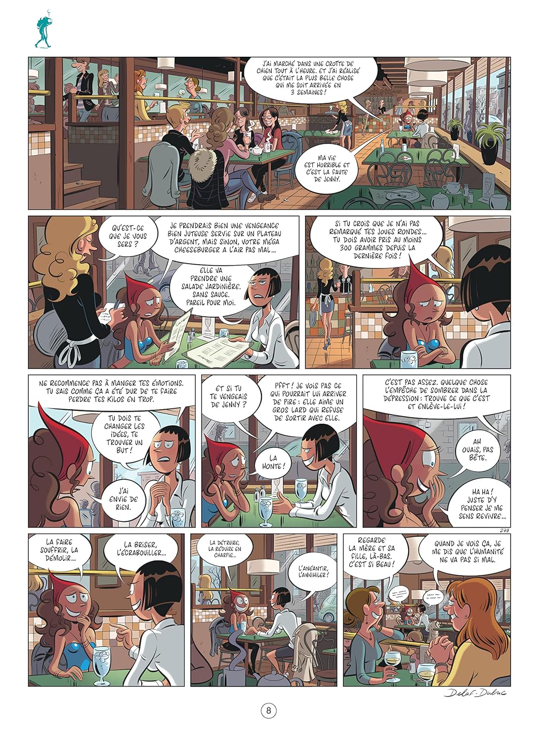 После премьерного альбома chez Vent d'Ouest (Le Guide Junior pour bien élever les Parent - scénario de Goupil et Douyé), Delaf publie Les Nombrils avec Dubuc en 2005, на страницах устаревшего журнала Safarir. Les lecteurs découvrent Jenny et Vicky, deux pestes nombrilistes, ainsi que Karine, leur gentil souffre-douleur. Le dessin de Delaf, tonique et précis, crève ltéralement l'écran. Сюр ле советы Марка Куадрадо, Делафа и др. . .