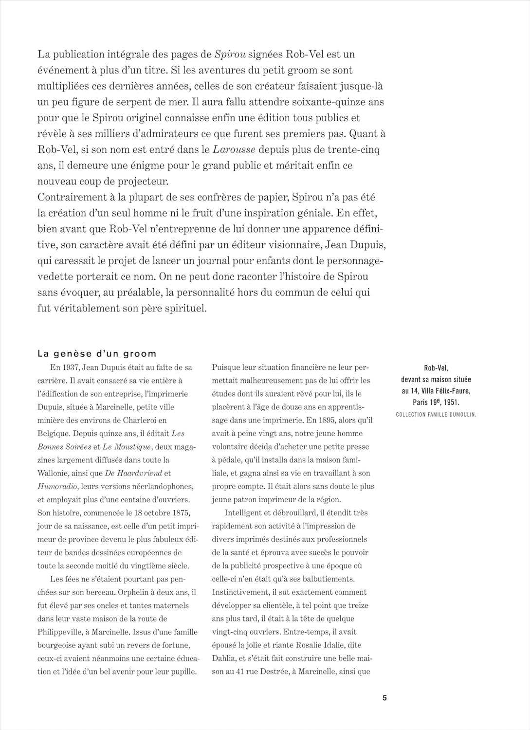 Хронологическое и интегрированное издание мифического произведения франко-бельгийской банды. Для премьеры воссоединения в альбоме в цветах, целостность страниц Спиру, реализованных Робом-Велем, сыном создателя, в период с 1938 по 1943 год. le porte-drapeau du Journal de Spirou mais aussi le porte-parole d'une génération très vite bâillonnée. Источники мифа о новом искусстве.