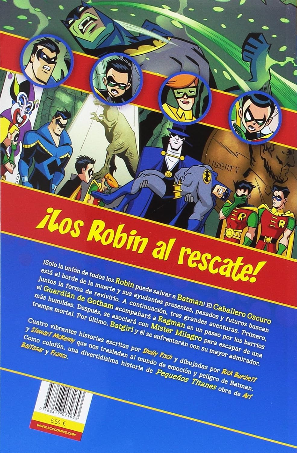 ¡Лос Робин аль спасается! ¡Объединение всех Робинов может спасти Бэтмена! Эль Кабальеро Оскуро - это граница смерти и их помощников в подарках, пасадос и будущих бусканских юнтос в форме возрождения. Продолжение, три великих приключения. Первый раз Страж Готэма сопровождал Рэгмена на улице, ведущей в большие районы. После того, как вы связались с мистером Милагро, чтобы сбежать от смертного бродяги. В конце концов, Бэтгерл и она были очарованы своим поклонником мэра. Несколько ярких исторических историй, написанных Шолли Фиш, и размышлений Рика Берчетта и Стюарта Маккенни, которые перешли в мир эмоций и любви к Бэтмену. Как цвет, интересная история Pequeños Titanes об искусстве Бальтазара и Франко.