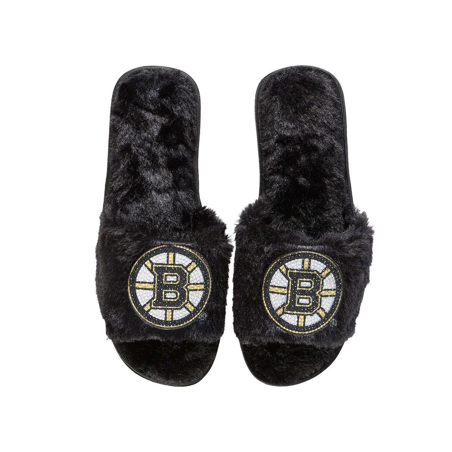 Женские черные тапочки FOCO Boston Bruins со стразами