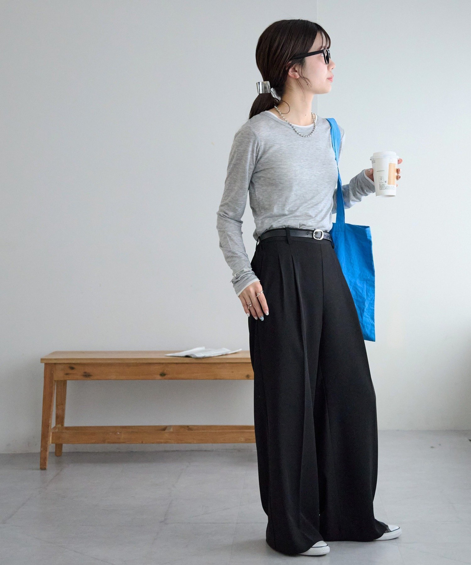 Сотрудник ростом 153 см: Тонкая ткань позволяет легко заправлять топ в брюки, не создавая ощущения громоздкости! Сочетание цветов в области рук и шеи очень милое♪