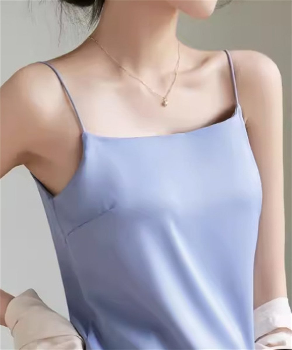 Женственная атласная майка из ледяного шелка с чашечками теперь доступна, с гладкой текстурой и элегантным блеском♪
