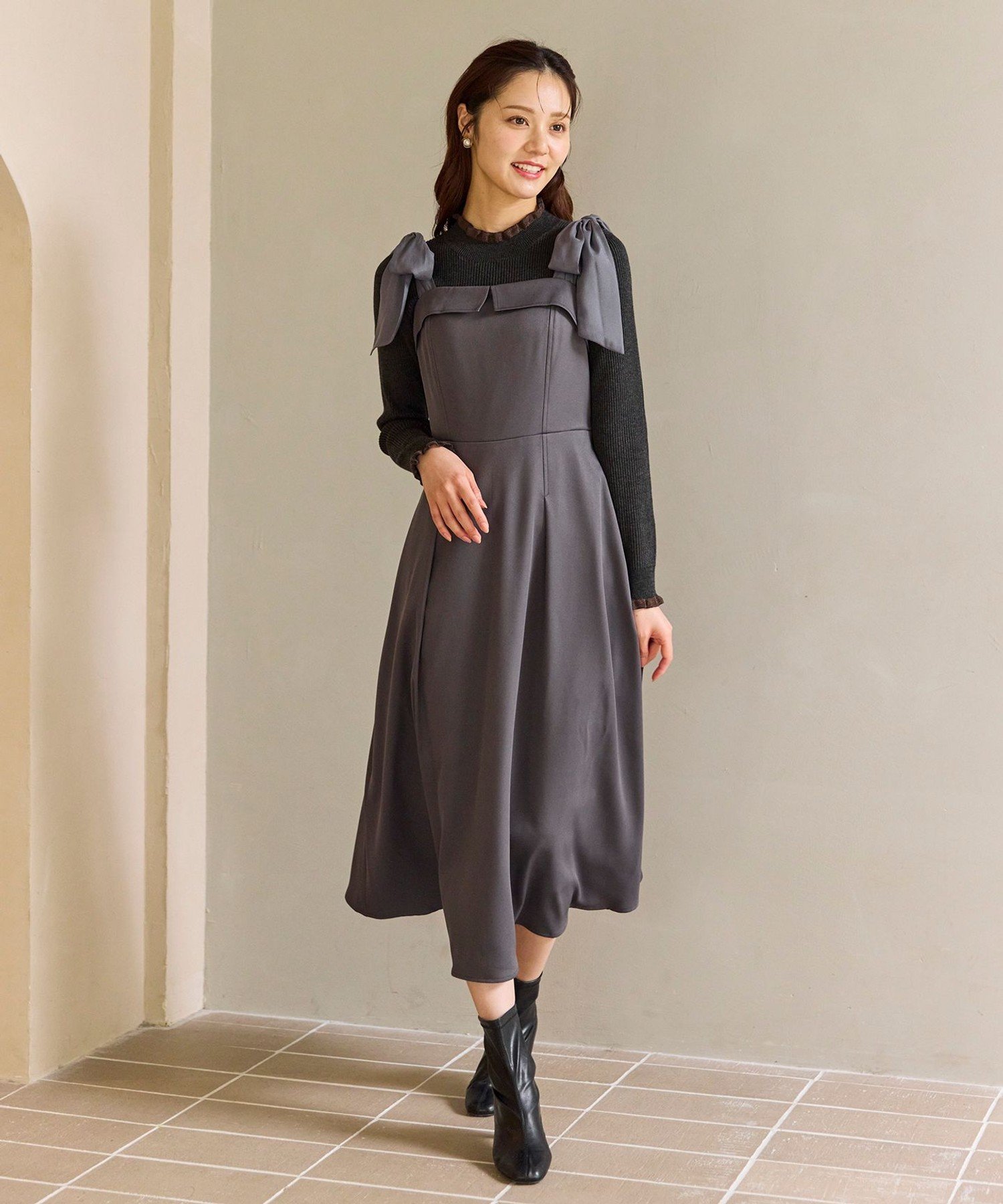 Универсальная юбка-свитер с эффектными лентами на плечах, которую можно носить круглый год. Ленты на плечах, выполненные из нежного, прозрачного и блестящего материала, добавляют образу гламура. Складчатый дизайн на груди также является изюминкой, добавляя объем декольте. Основная часть выполнена из мягкого, струящегося материала, создавая женственный силуэт, не слишком расклешенный. Заправленная юбка добавляет объема и утонченности. Ее можно носить как юбку-свитер, сочетая с трикотажной блузкой или блузкой под ней, или как платье, что делает ее очень универсальной. Эффектная вещь, сочетающая в себе дизайн и удобство ношения.