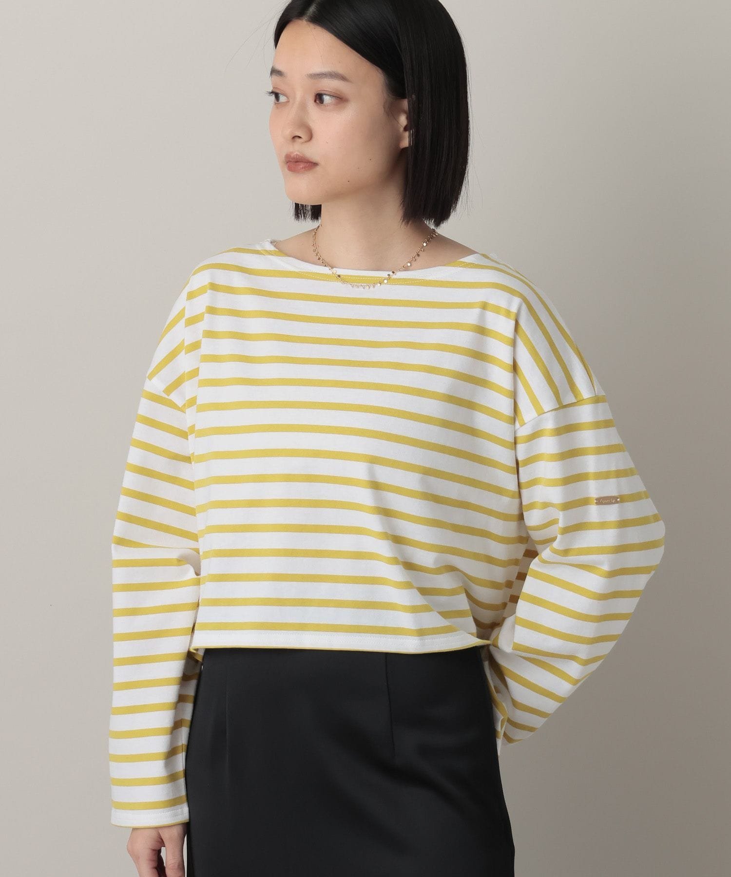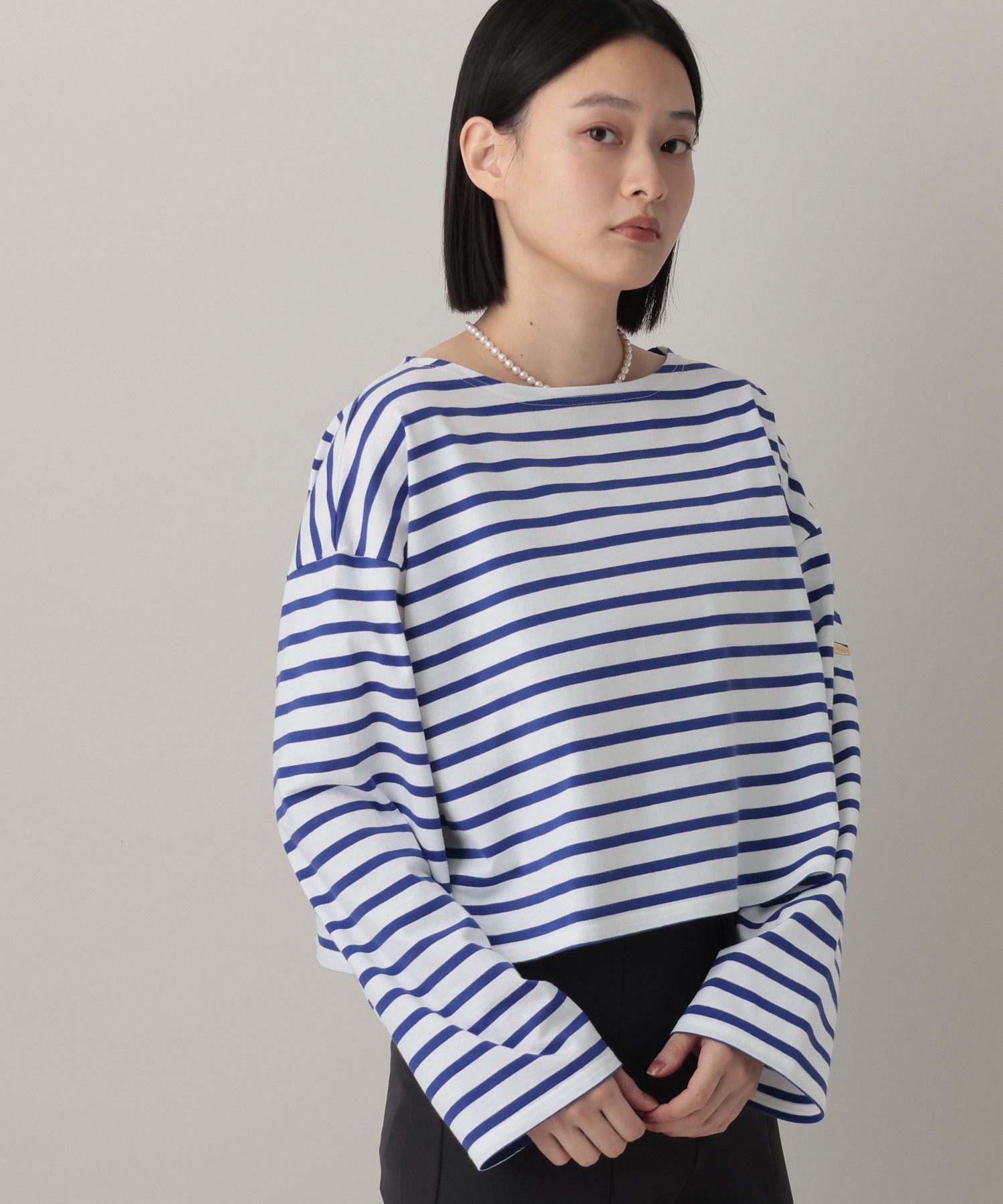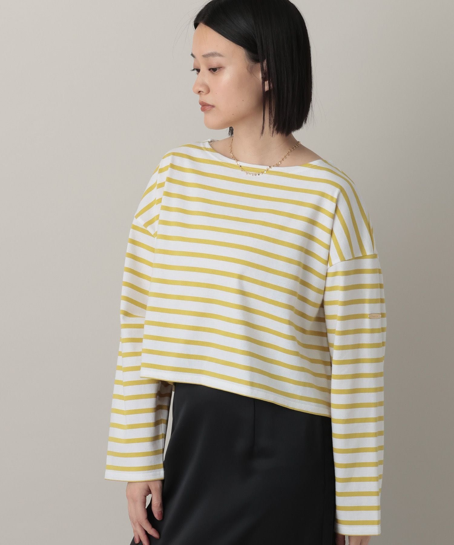 Укороченный полосатый топ свободного силуэта.