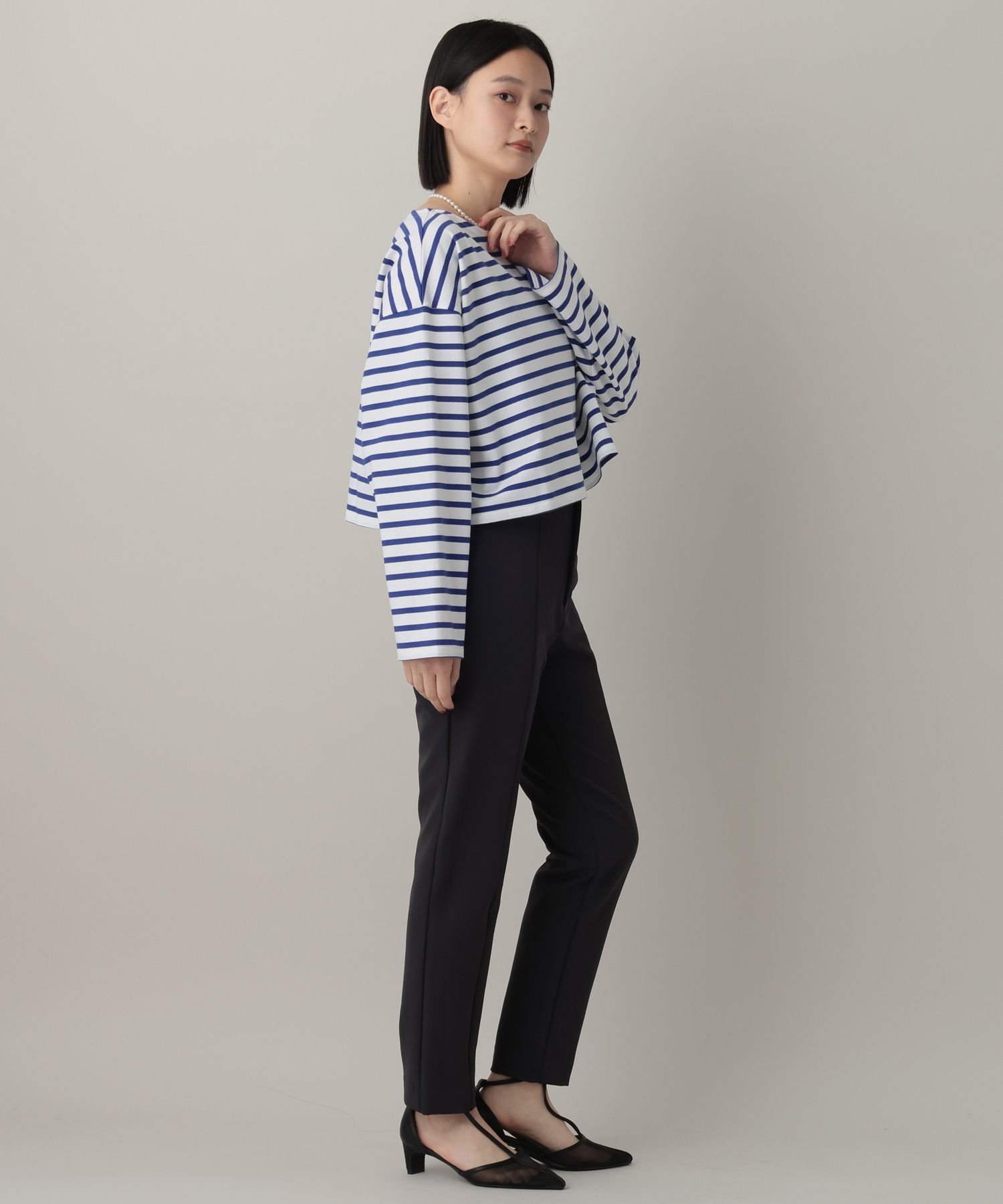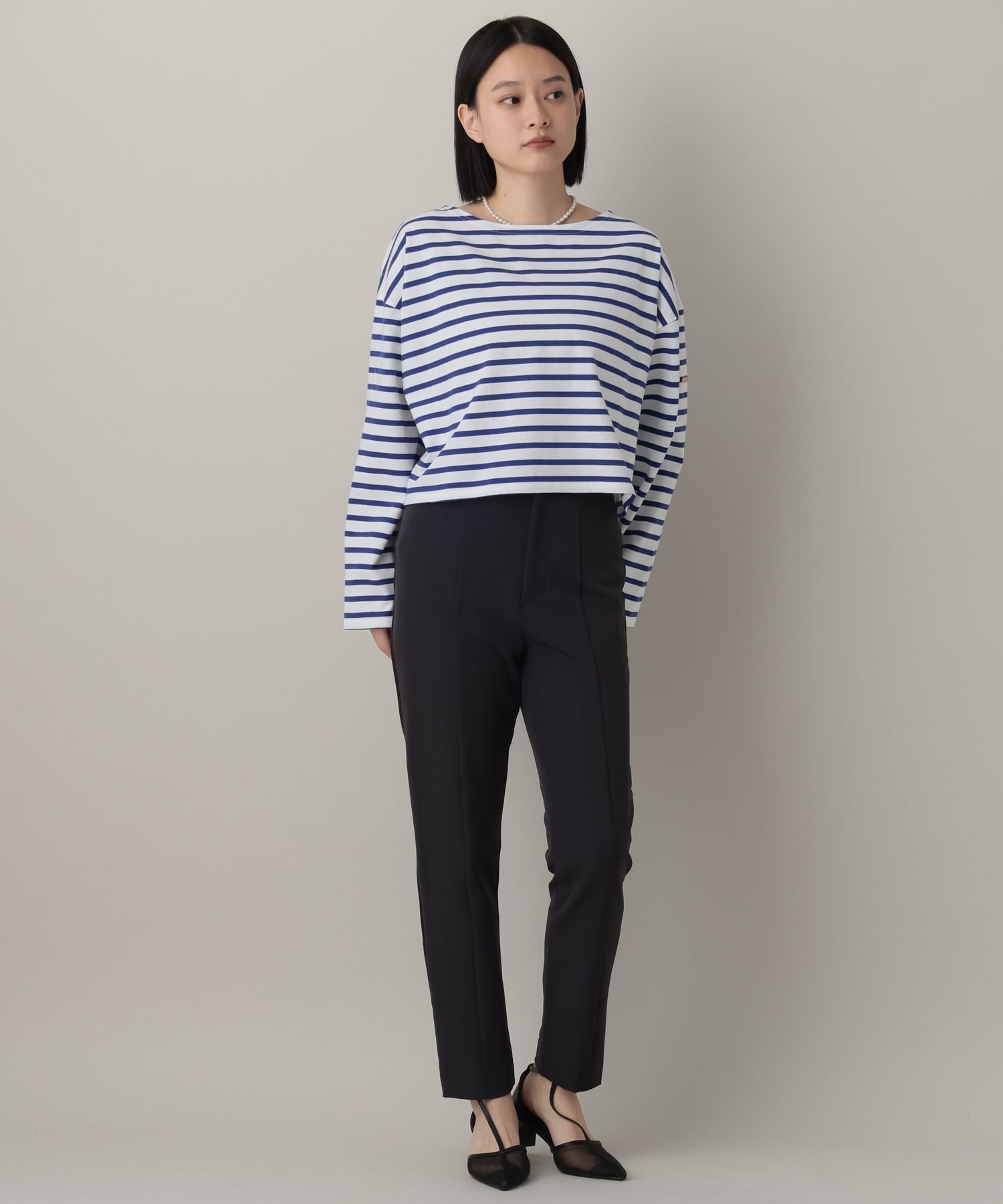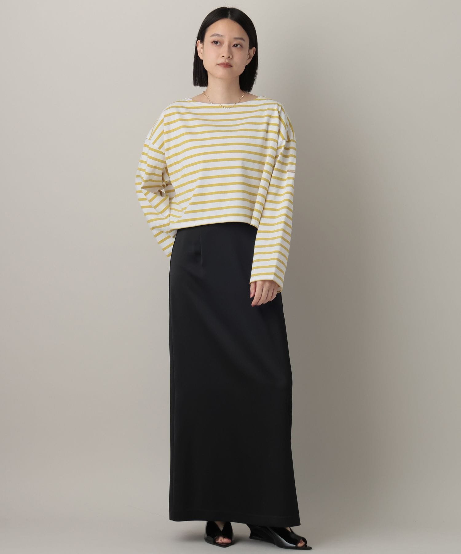 Укороченный полосатый топ свободного силуэта.
