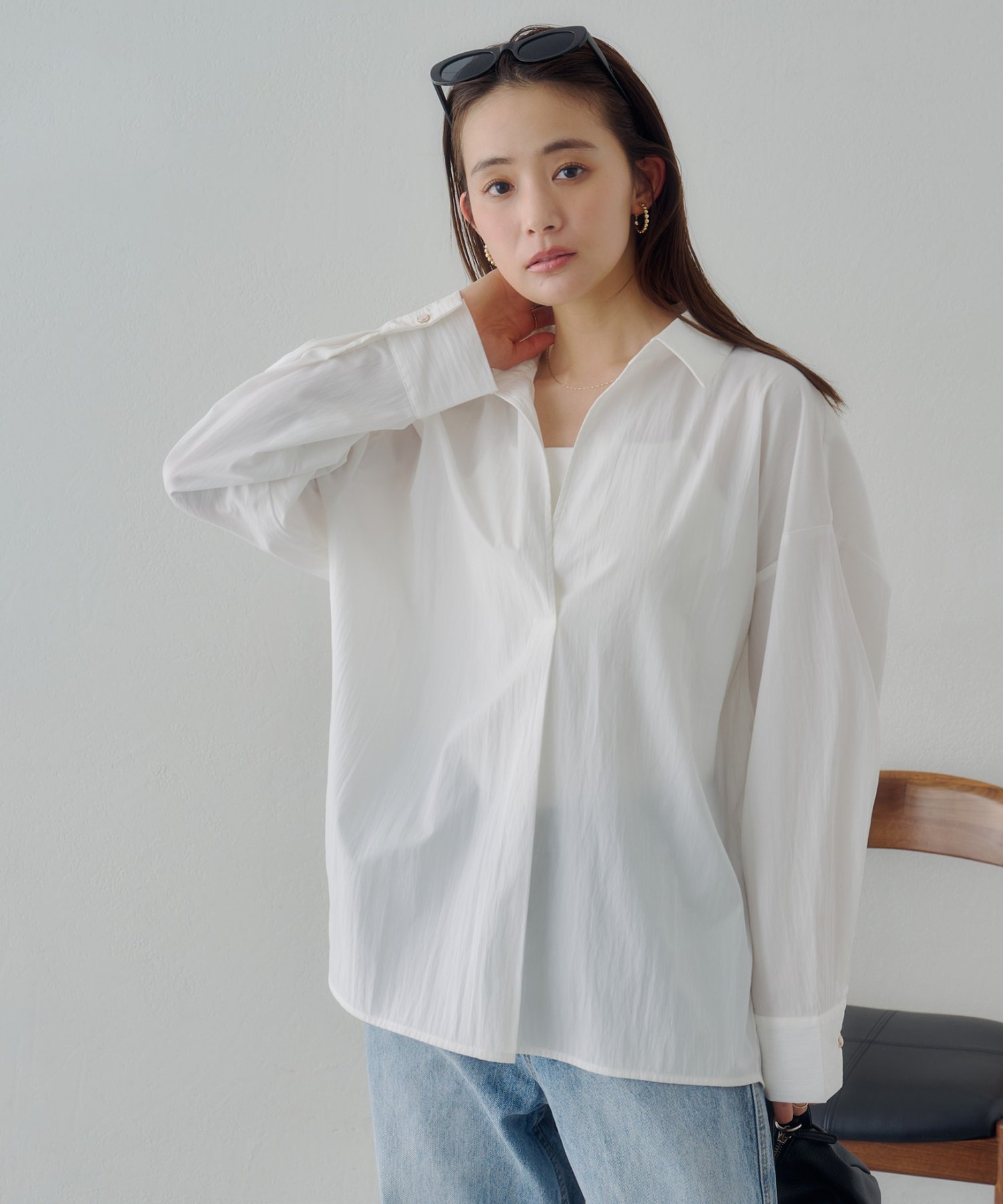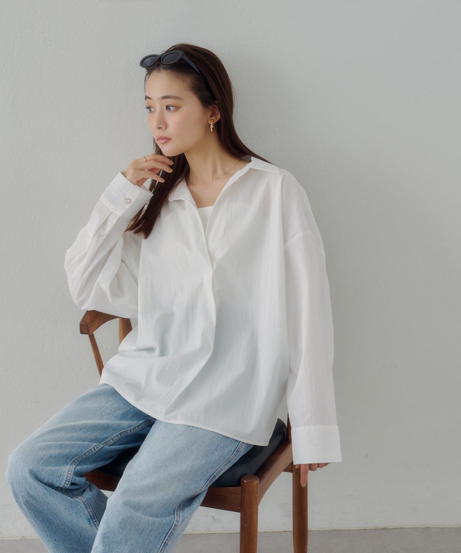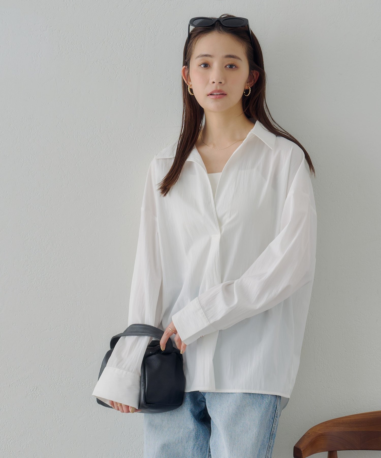 Блузка-скиппер с воротником Discoat, цвет Off White 6 379₽